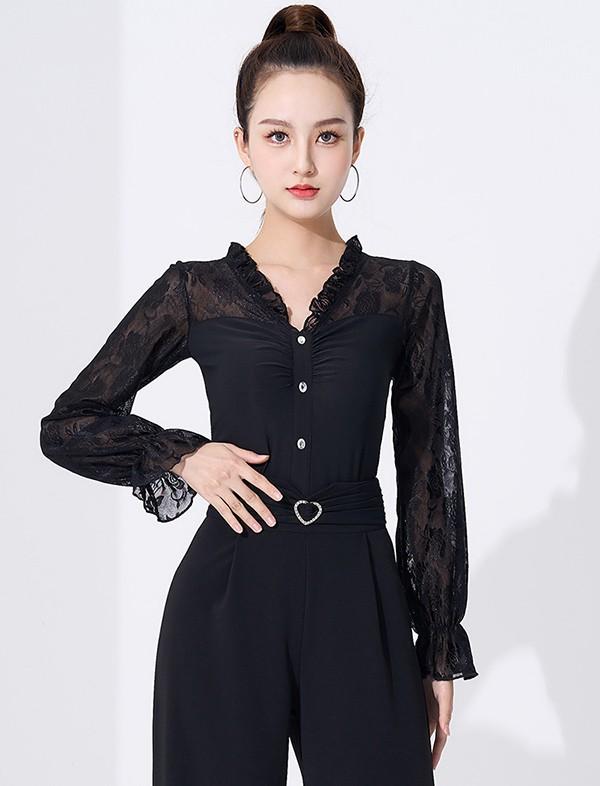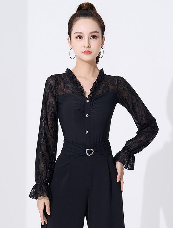 社交ダンス トップス 社交ダンス衣装 レオタード式 トップス 大きいサイズ Vネック ダンス用シャツ レース ダンスTシャツ レース 透け感 社交ダンス ラテンダンス ダンスウェア 練習着 長袖 カラオケ衣装 レッスンウェアas019s1s1l9