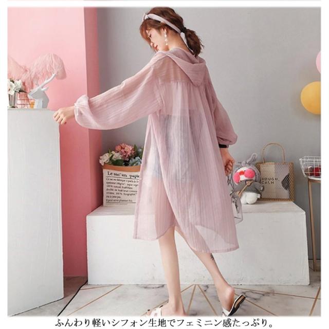 【送料無料】ロングカーディガン 薄手 シャツ シースルー ゆったり 長袖 日焼け止め ラッシュガード 透け感 サマーカーディガン レディース シフォン ロング丈 フード付き
