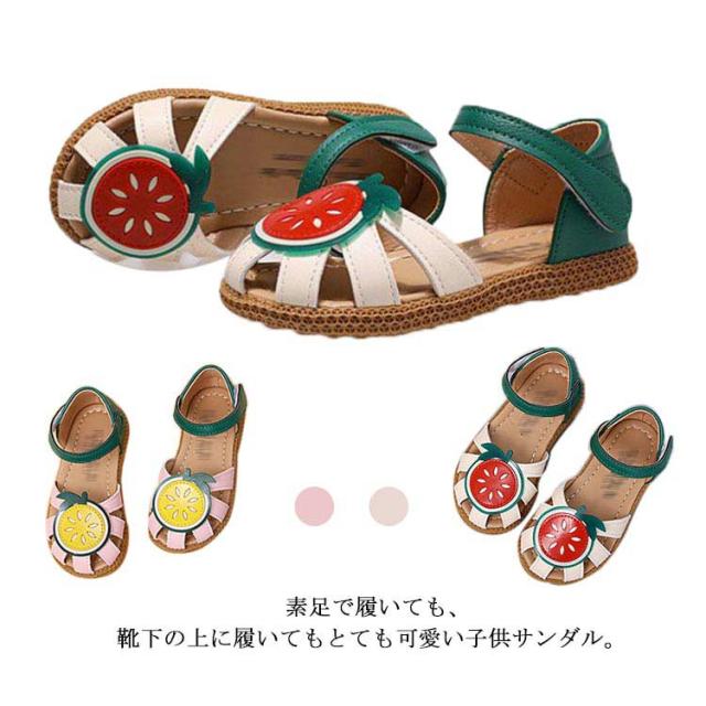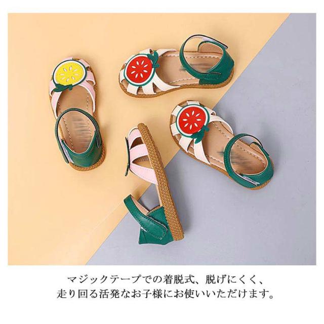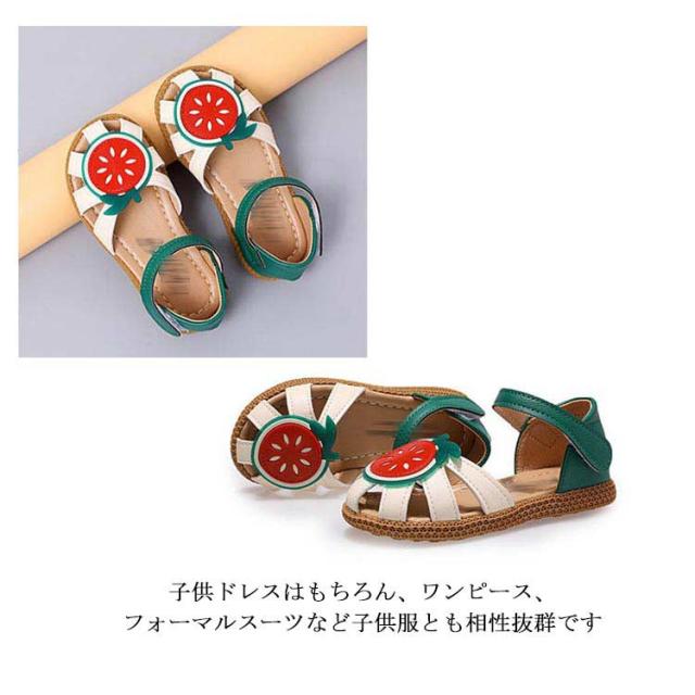子供靴 女の子 フォーマルシューズ サンダル キッズ靴 結婚式 発表会 ガールズ 入学式 卒業式 マジックテープ フルーツ柄 お洒落 履きやすい 疲れにくい