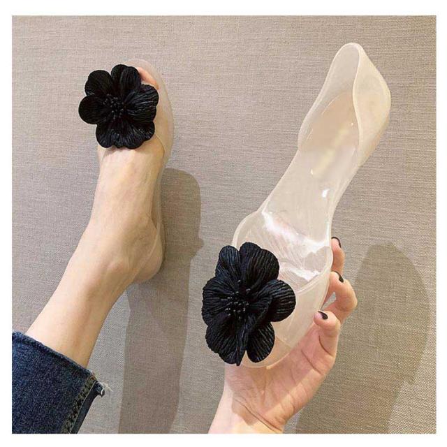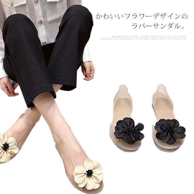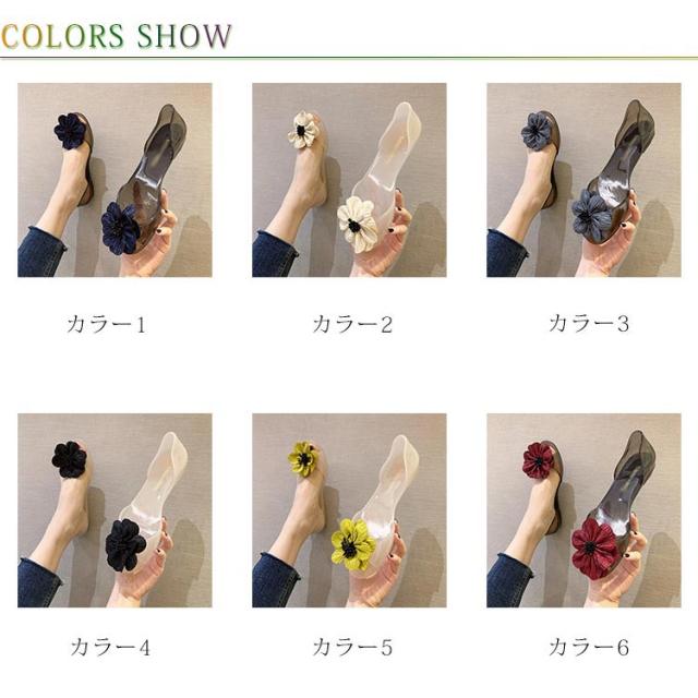 ラバーサンダル パンプス レディース フラワー 透明 防水 滑り止め ラバーシューズ ローヒール ぺたんこ フラット クリア シースルー ビーチ リゾート 履きやすい 歩きやすい 痛くない 美脚
