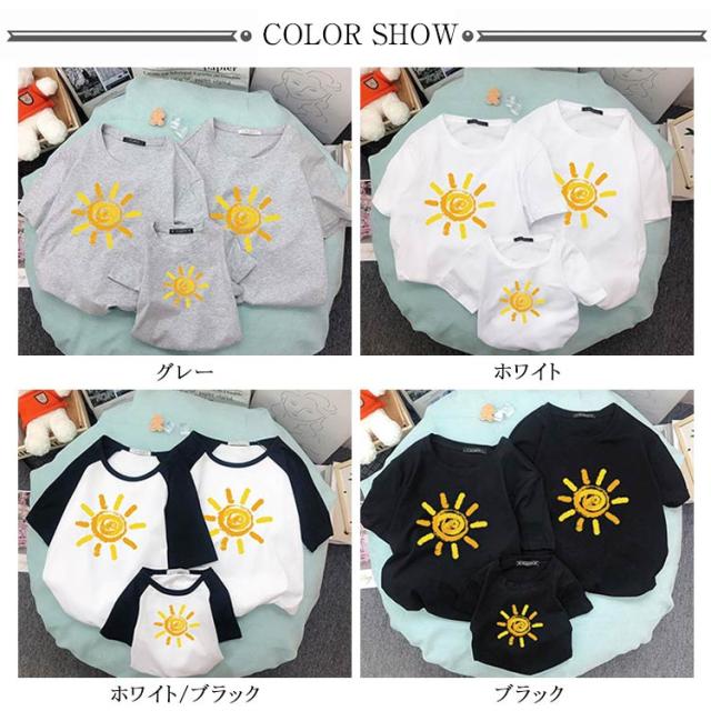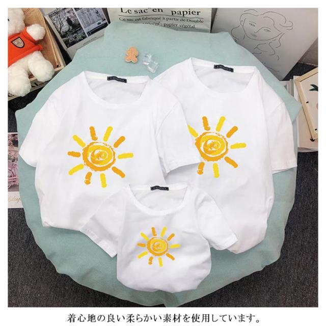 | おしゃれな親子お揃いTシャツ。 着心地の良い柔らかい素材を使用しています。 家族揃いで幸せ感たっぷり。 家族旅行、撮影、運動会、お出かけに最高。 | |