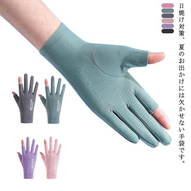 UVカット UV手袋 レディース 接触冷感 ショート 涼しい グローブ 夏用 紫外線対策 日焼け止め 2つ指切り ひんやり 日焼け対策 クール 滑り止め 薄手 自転車 運転 通勤 通学 手袋 女性用 送料無料