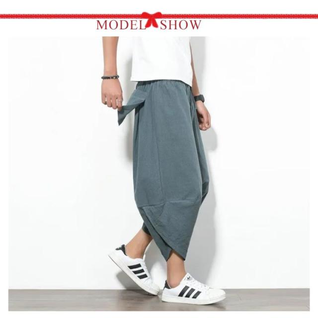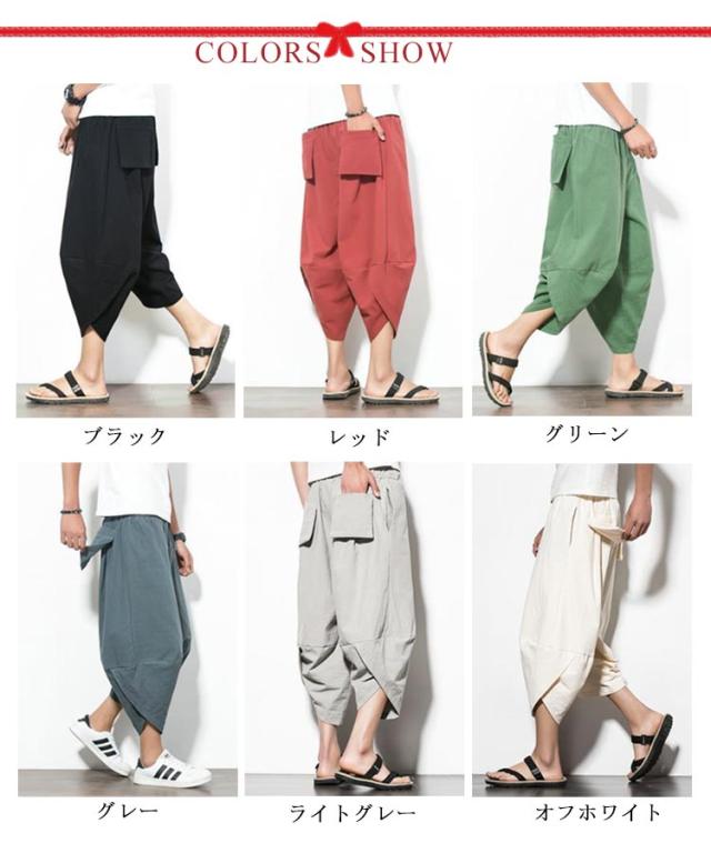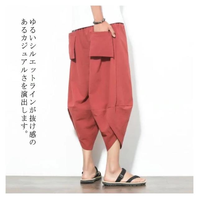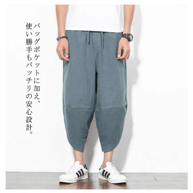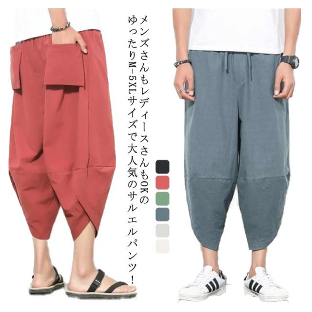 アラジンパンツ サルエルパンツ メンズ ゆったり 春夏 秋 ワイドパンツ 無地 綿麻風