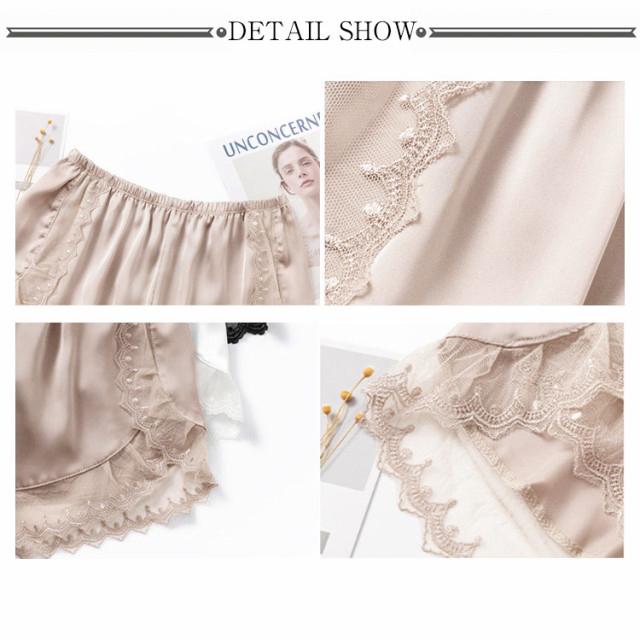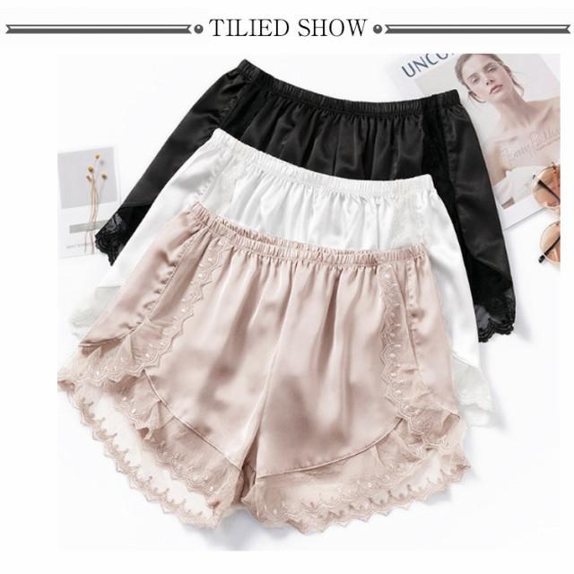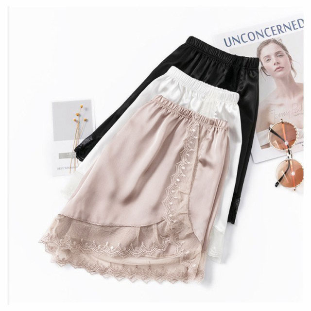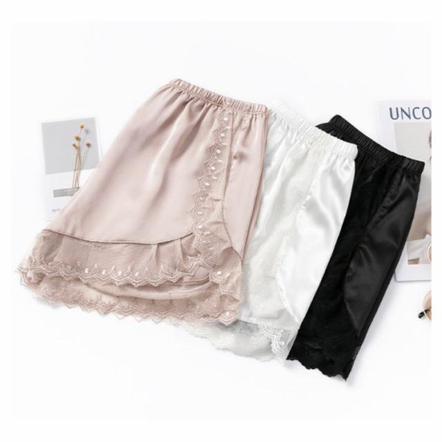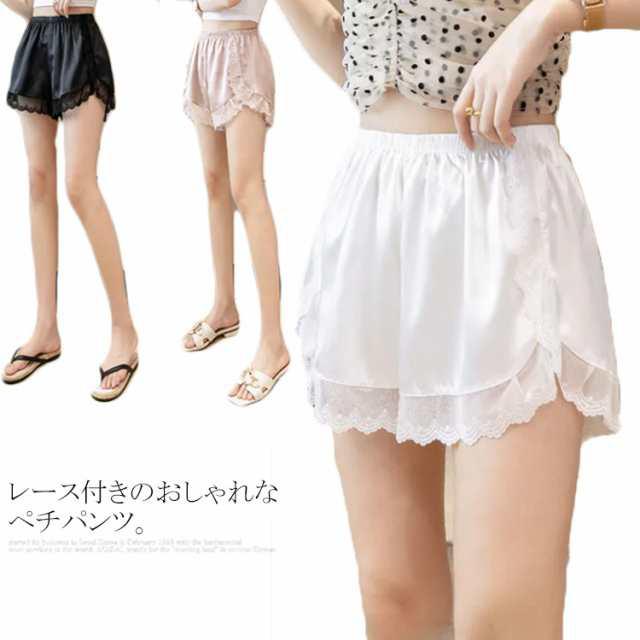 送料無料 ペチパンツ レディース 2枚セット ショートパンツ ボトムス ショーパン 見せパン 透け防止 ショート丈 春 無地 サテン レース おしゃれ 春 夏 秋