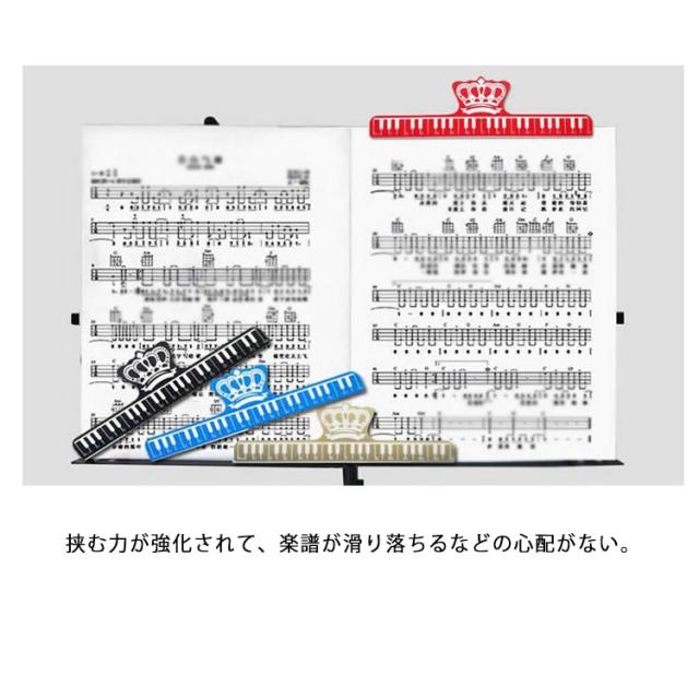 | シンプルかつスタイリッシュな鍵盤柄楽譜クリップです。 大きめサイズなので、安定性が高く、しっかりと譜面をホールドします。 挟む力が強化されて、楽譜が滑り落ちるなどの心配がない。 高品質なプラスチック素材で、耐久性が優れ、丈夫で壊れにくい。 楽譜以外にも文房具としてファイルなど厚紙も閉じないで固定できる。 | |