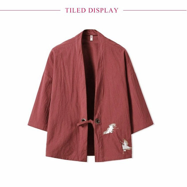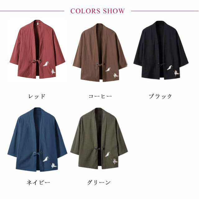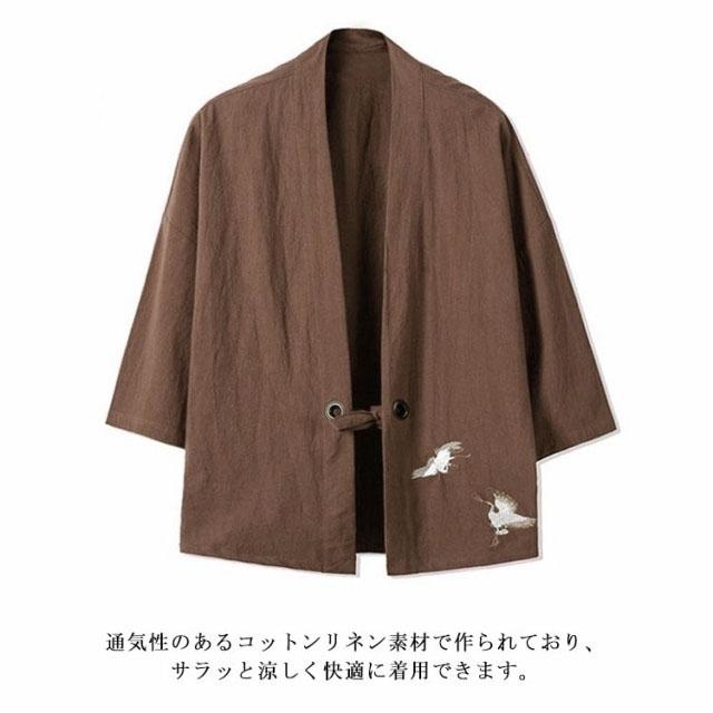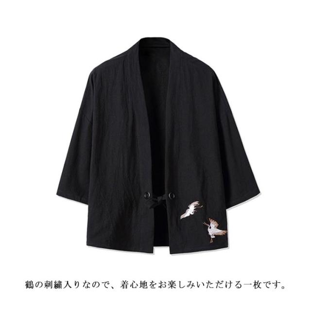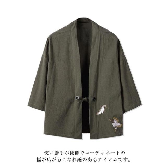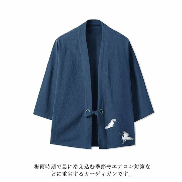 カーディガン 甚平風 開襟シャツ 7分袖 和式パーカー 刺繍 和風 羽織 メンズ 鶴柄 シンプル トップス ゆったり カジュアル おしゃれ 大きいサイズ 夏服 薄手 送料無料