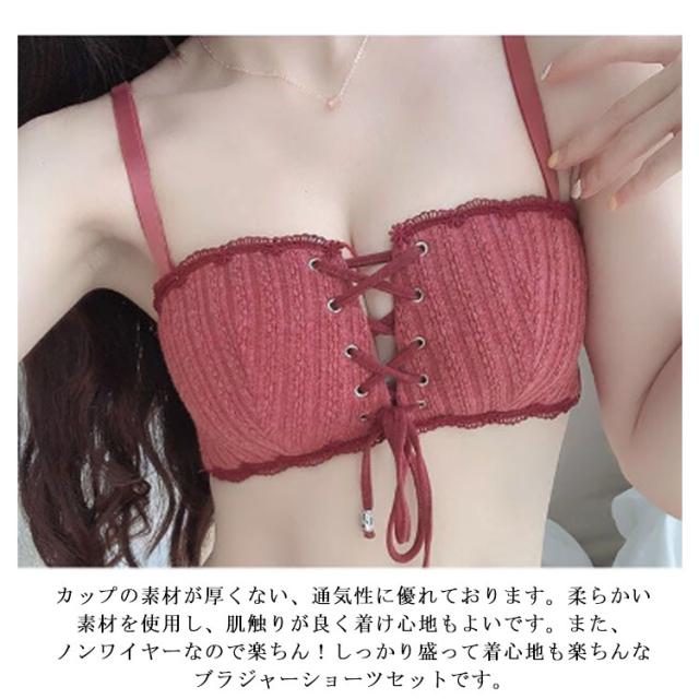 ブラショーツ セット レディース ブラ ショーツ 下着 バストアップ ブラセット レース ノンワイヤー らくらく盛れる 小胸 紐 ルーム 美しいブラ 可愛いブラジャー パステル 脇高