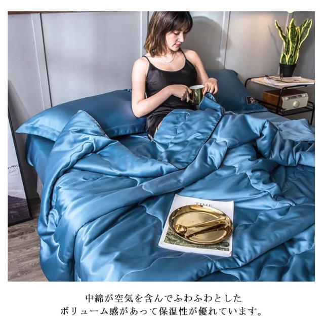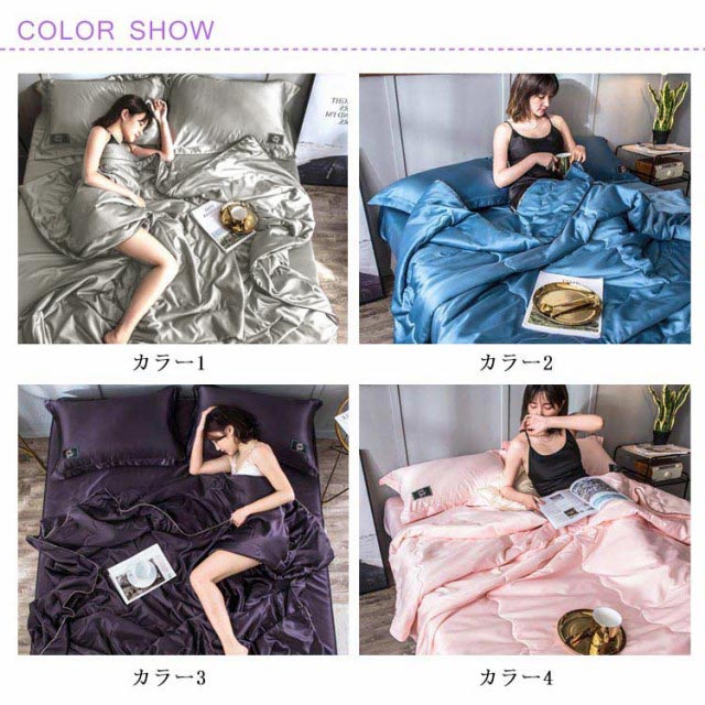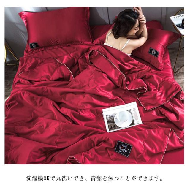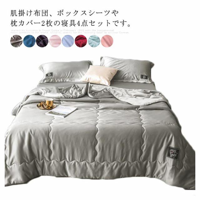 夏布団 涼感 肌掛け布団 冷感 4点セット シングル セミダブル ダブル 敷布団カバー ボックスシーツ 枕カバー2枚 夏掛け布団 キルトケット タオルケット 丸洗い 抗菌 防ダニ 北欧 無地 おしゃれ 光沢