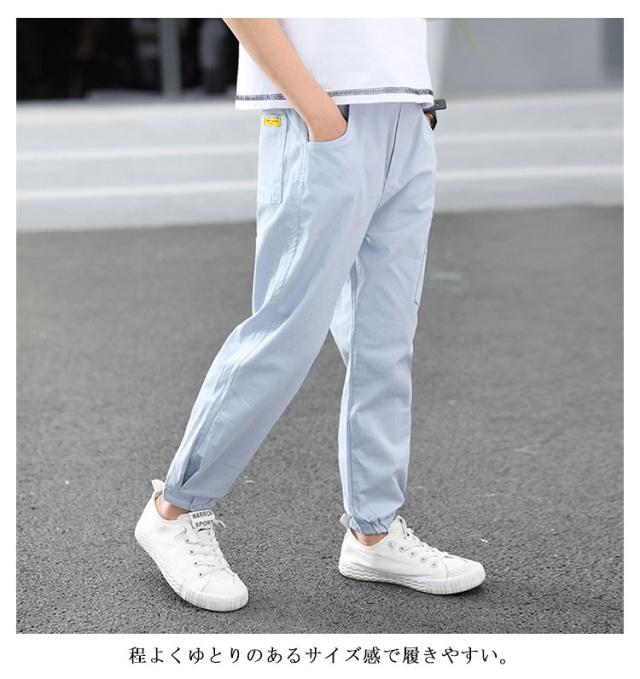 【送料無料】ジョガーパンツ 子供服 ズボン 男の子 ボトムス ジュニア キッズ スポーツ カジュアル 薄手 長ズボン 夏服 子供パンツ ロングパンツ UVカット サルエルパンツ シンプル 虫よけズボン