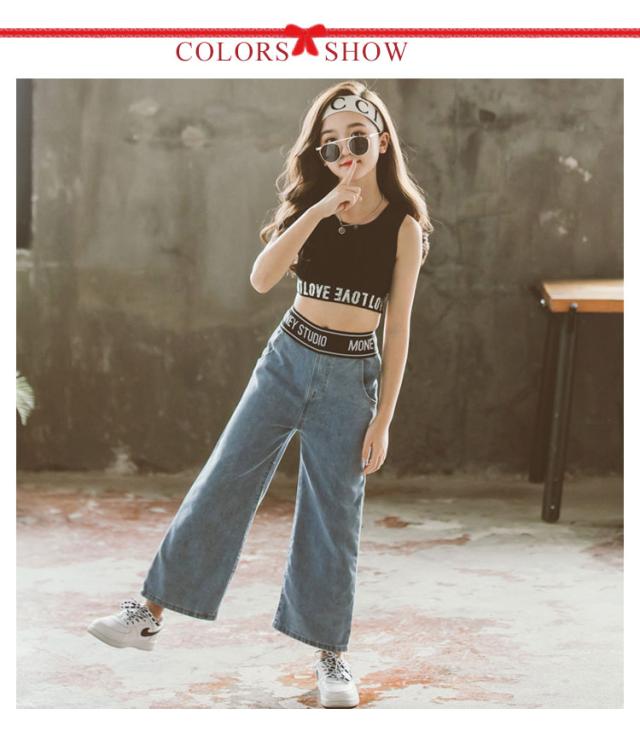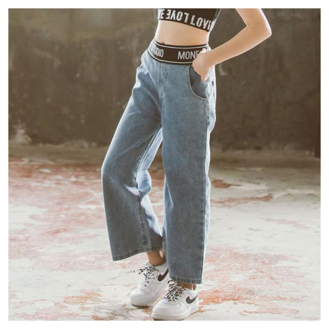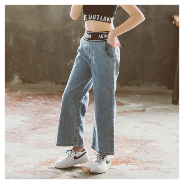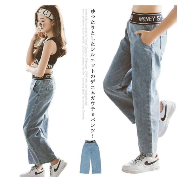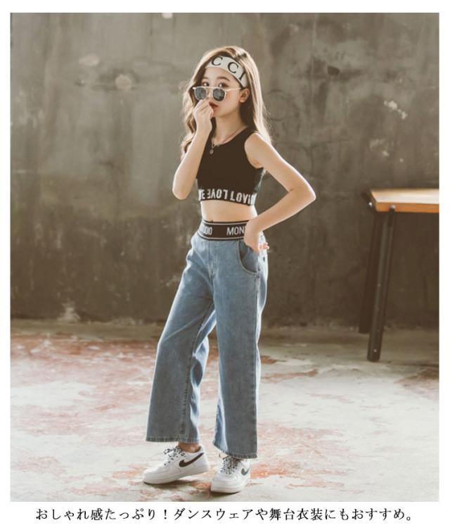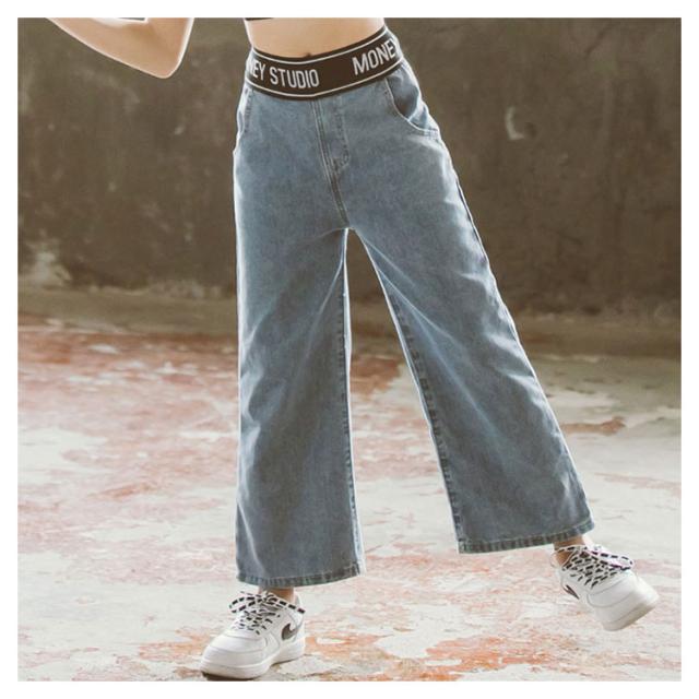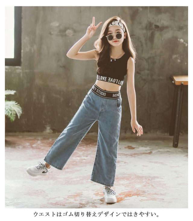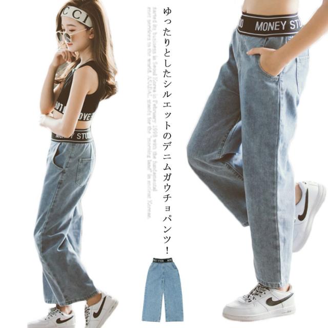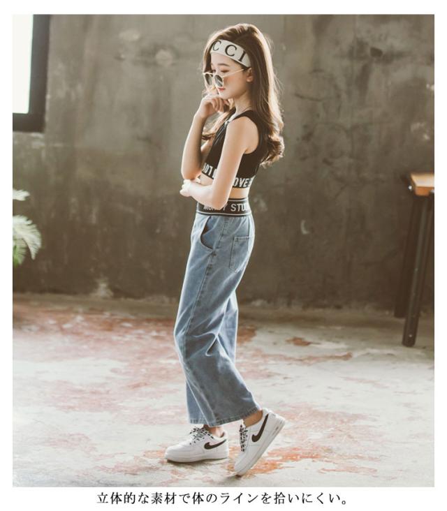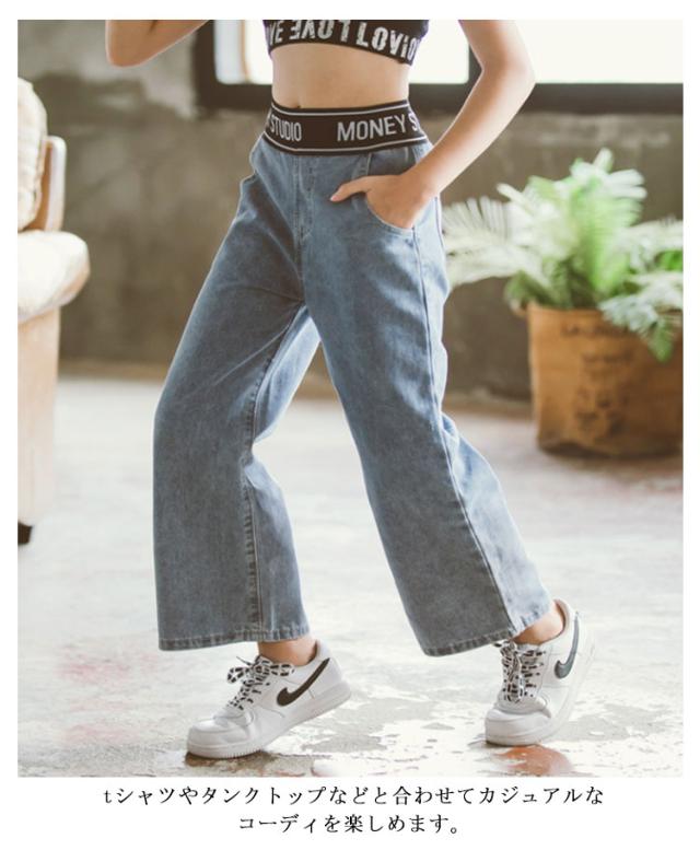 【送料無料】ガウチョパンツ キッズ 春夏 女の子 ジーンズ ジーパン デニムパンツ ワイドパンツ ダンス衣装 ダンスウェア 舞台衣装 切り替え マキシ丈 子供服 長ズボン カジュアル ゆったり