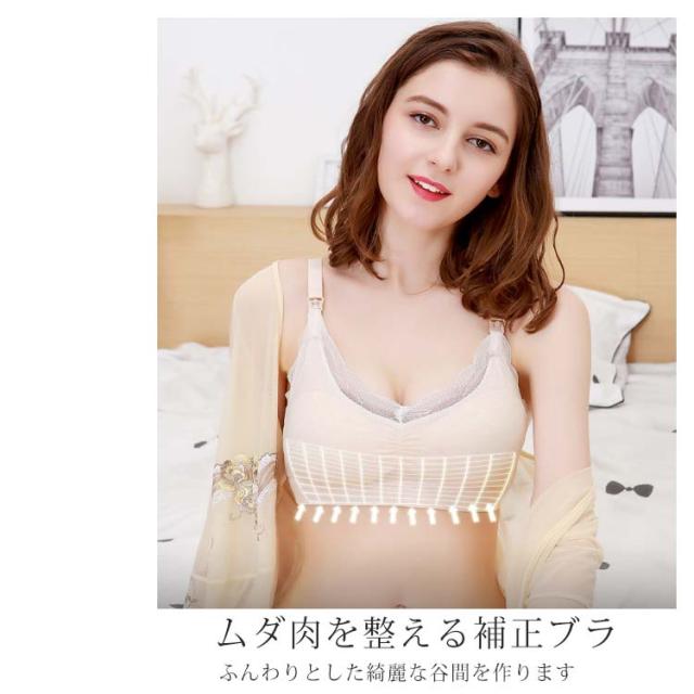 授乳対応ブラ 産後補正ブラ 育乳 授乳 マタニティ授乳下着 ブラジャー 前開き 脇 背中すっきりノンワイヤー 妊婦 産前産後 レース付き 下垂対策 産後