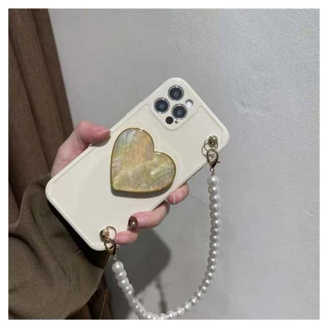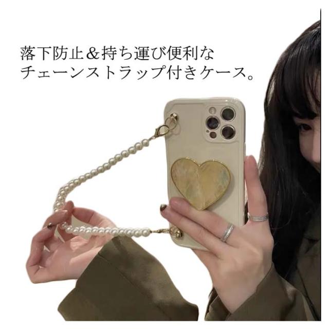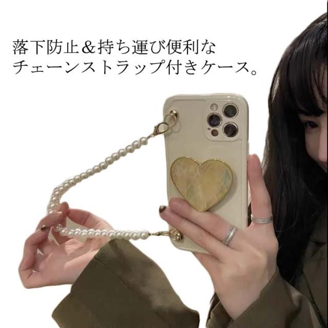 iPhoneケース ストラップ付き 落下防止 シリコンケース パールチェーン付き 耐衝撃 紐取り外しOK レンズの全面保護 手持ち ハンドストラップ お洒落