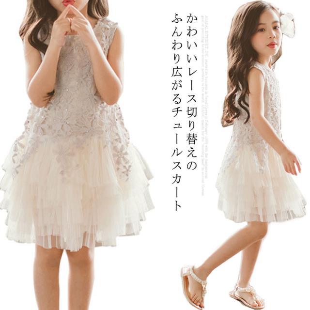 子供 ワンピース レース刺? チュールワンピ 子供服 女の子 ガールズ ワンピース フリル 切り替え かわいい フォーマル ノースリーブ ワンピース 送料無料 可愛い お姫ドレス プリンセス フォーマル ピアノ 発表会 卒業式 入学式 結婚式
