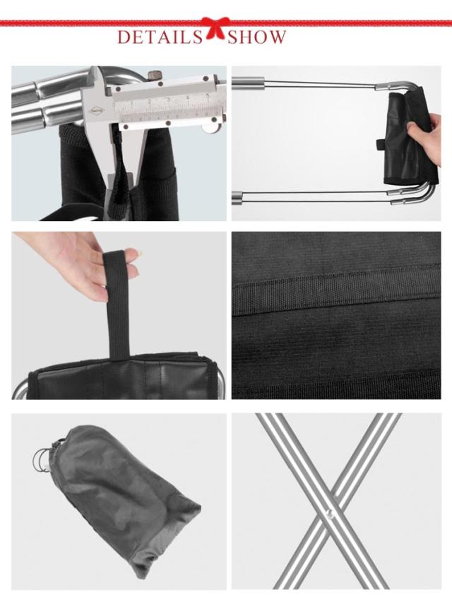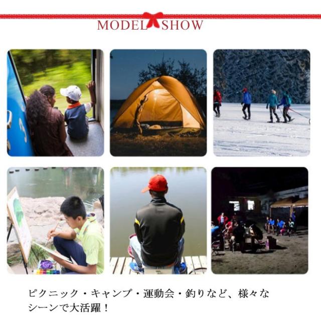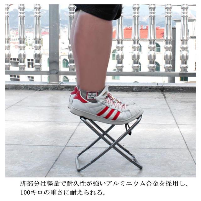 | 本体の重量はわずか285gで、軽くて持ち運びに便利。 脚部分は軽量で耐久性が強いアルミニウム合金を採用し、100キロの重さに耐えられる。 ポケットに入るぐらいの大きさに折りたたみ可能! ピクニック・キャンプ・運動会・釣りなど、様々なシーンで大活躍! | |