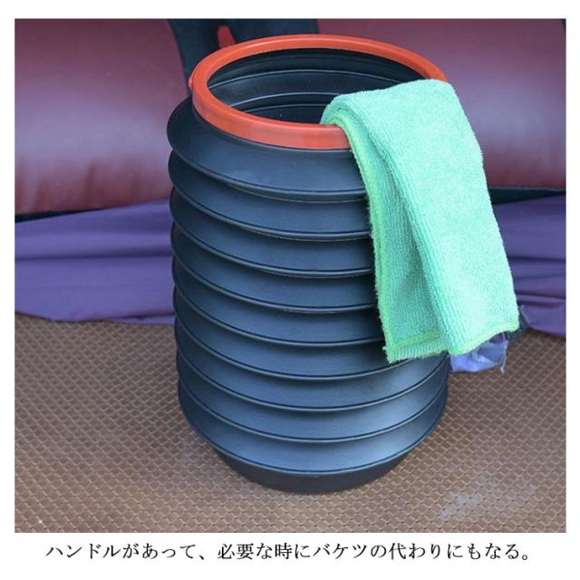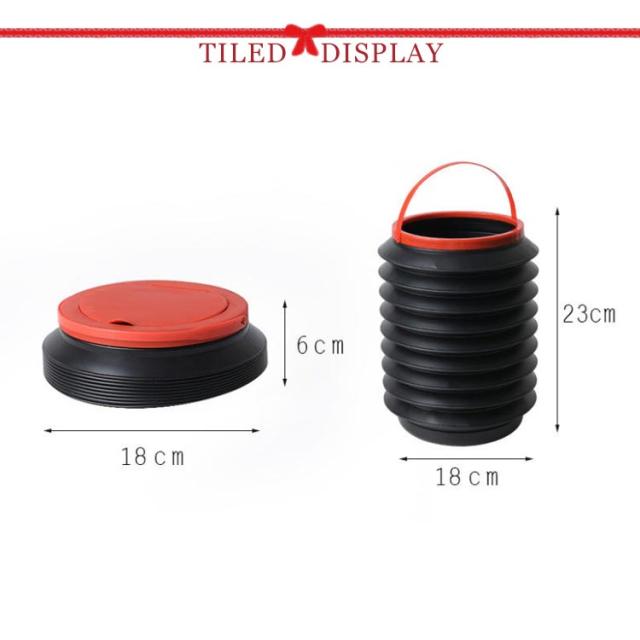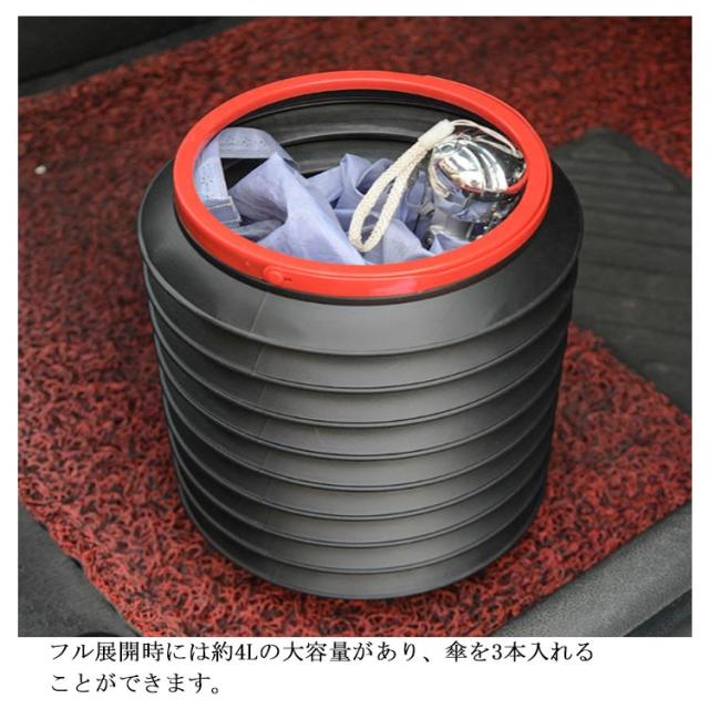 | リビング、キッチン、オフィス、車内、洗面所など様々な場所でお役に立ちます!使わない時には折りたたんで隙間に収納! 高さが調節可能で、形も変えられます。 フル展開時には約4Lの大容量があり、傘を3本入れることができます。 ハンドルがあって、必要な時にバケツの代わりにもなる。 | |