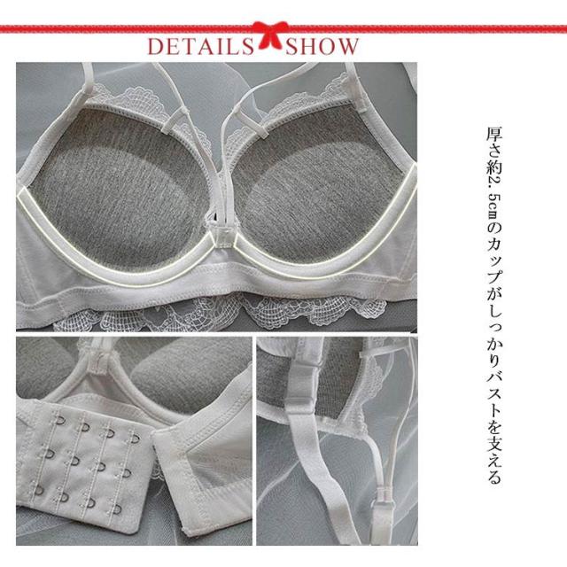 | 大人可愛い総レースのデザインのブラジャーをショーツセットです。 やわらかい生地で優しい肌触り♪ 深いV型できれいな谷間を実現。 | |