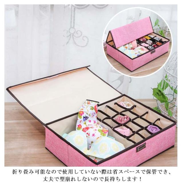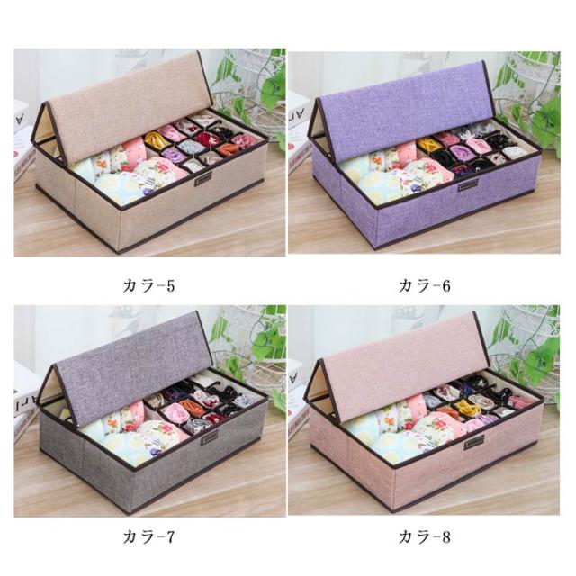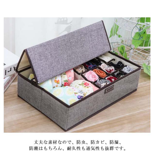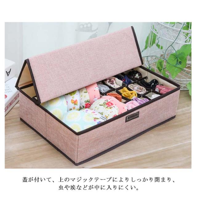下着収納 靴下収納 仕切り ブラジャー収納 ブラ収納 収納ボックス 収納ケース 小物収納 小物入れ 大容量 折りたたみ式 蓋付き 防虫 防湿 通気 洗える 省スペース 収納??