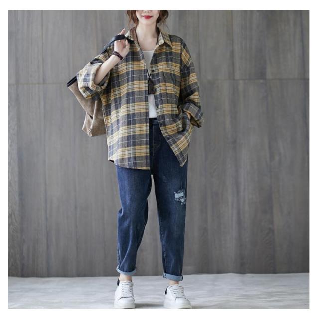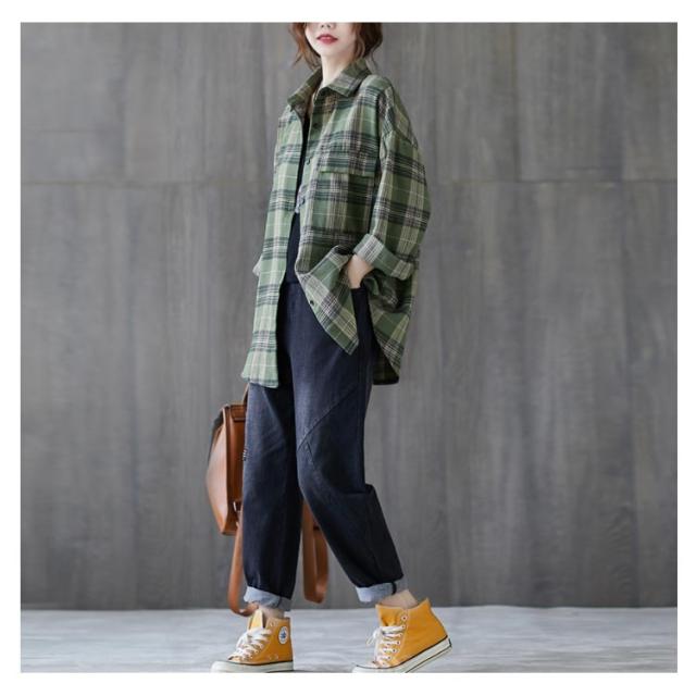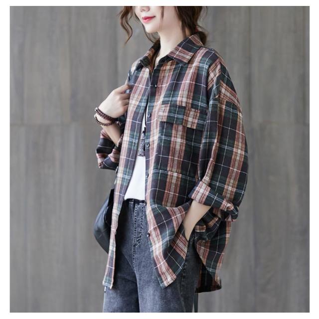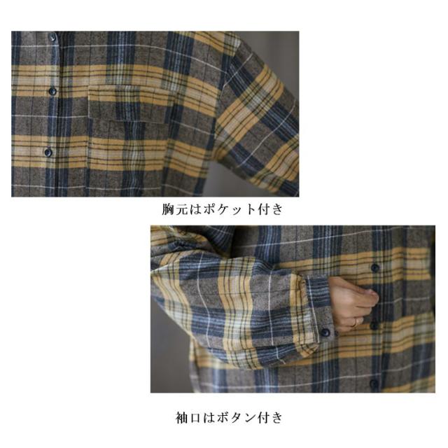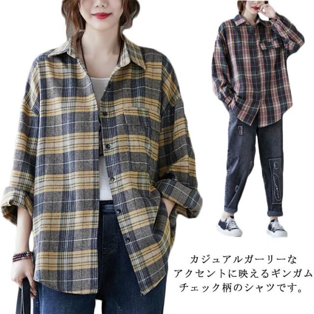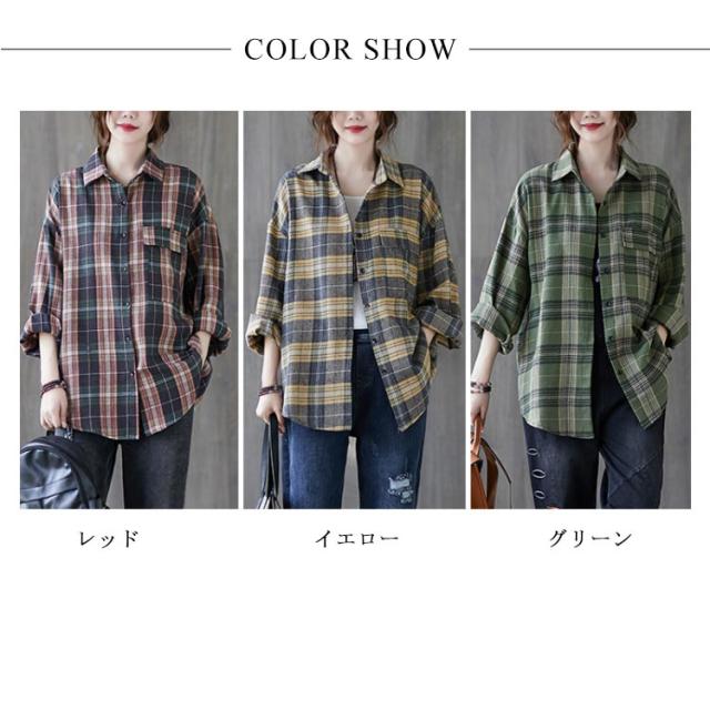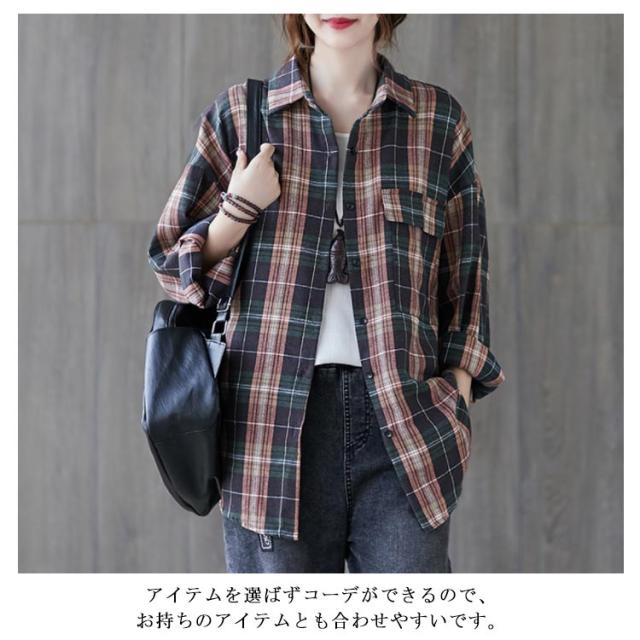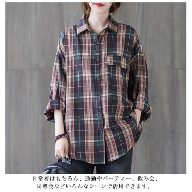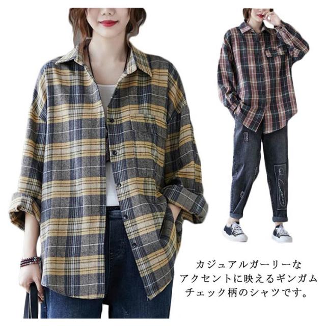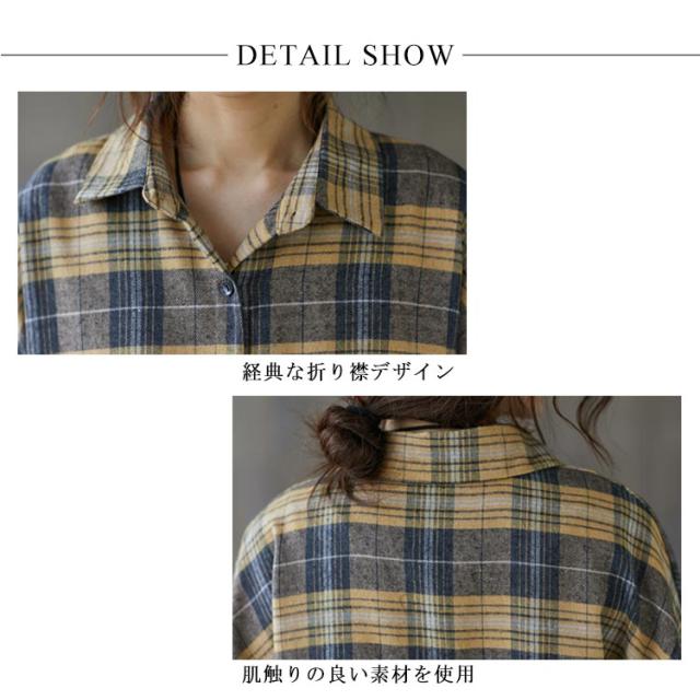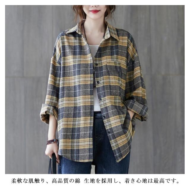 送料無料 チェックシャツ レディース ロングシャツ チェック柄 長袖 ゆったり トップス 綿 コットン シャツ 春秋 チェック柄カジュアル 上着 トップス ファッション カジュアルシャツ 新作