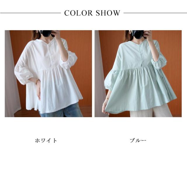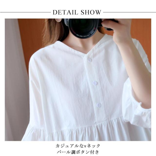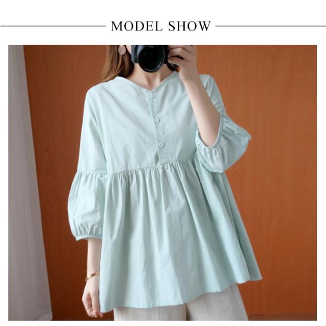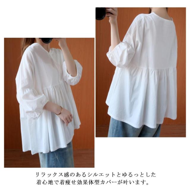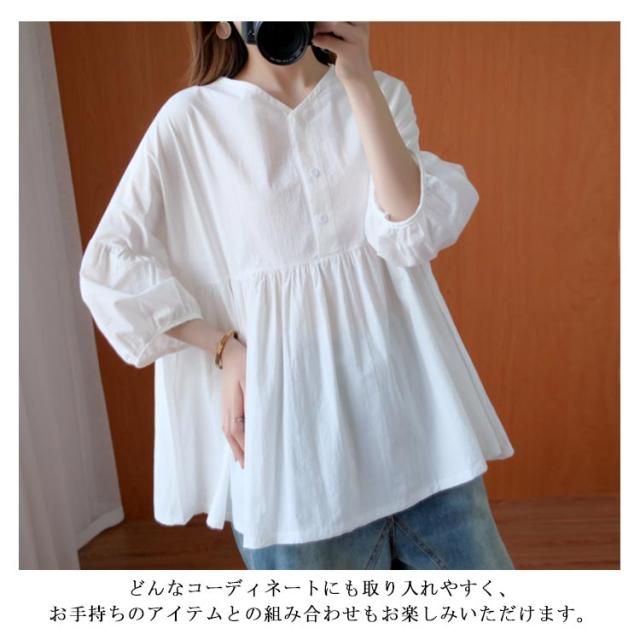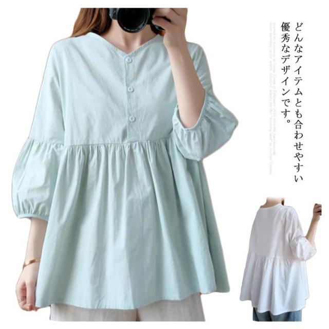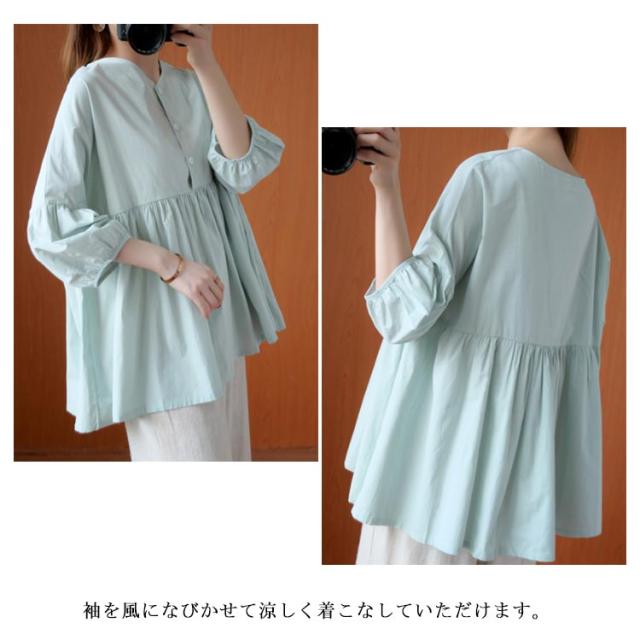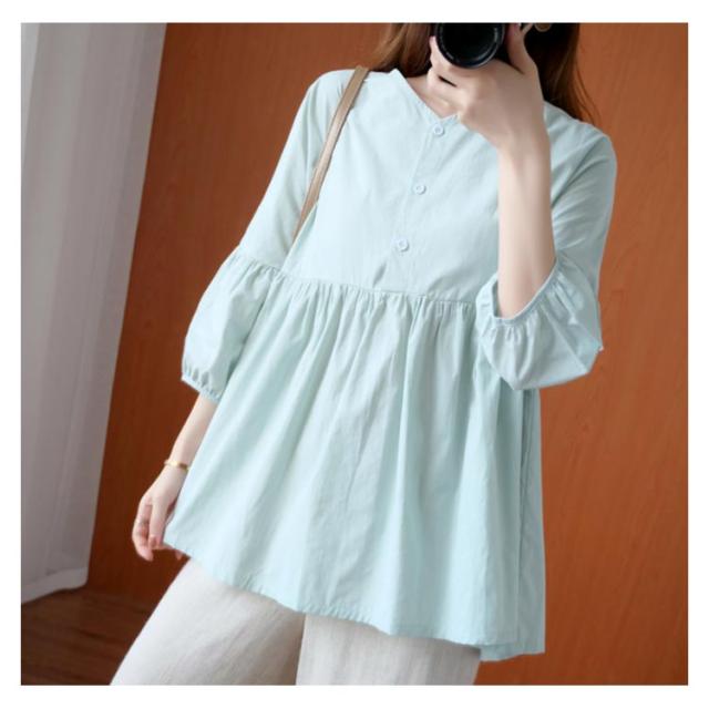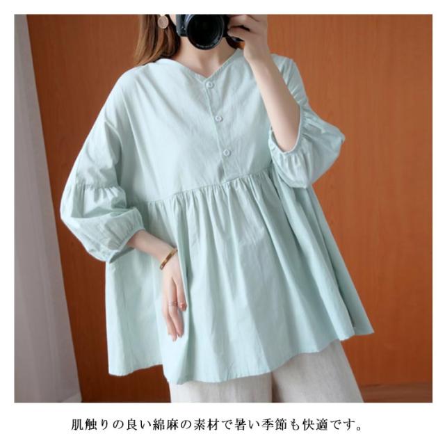 送料無料 ブラウス トップス リネン シャツブラウス レディース 七分袖 体型カバー 綿麻 リラックス さらさら ふんわり 普段着 部屋着 通勤 通学 森ガール型 新作