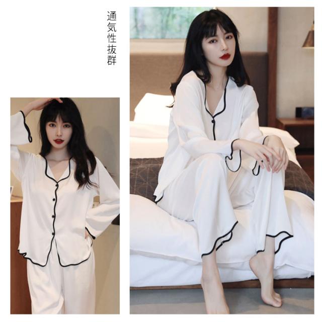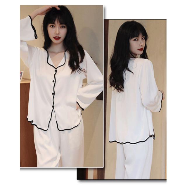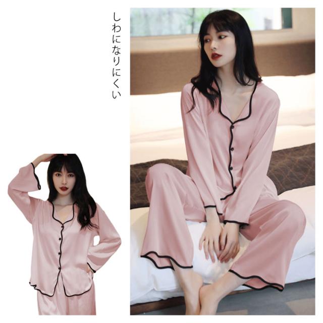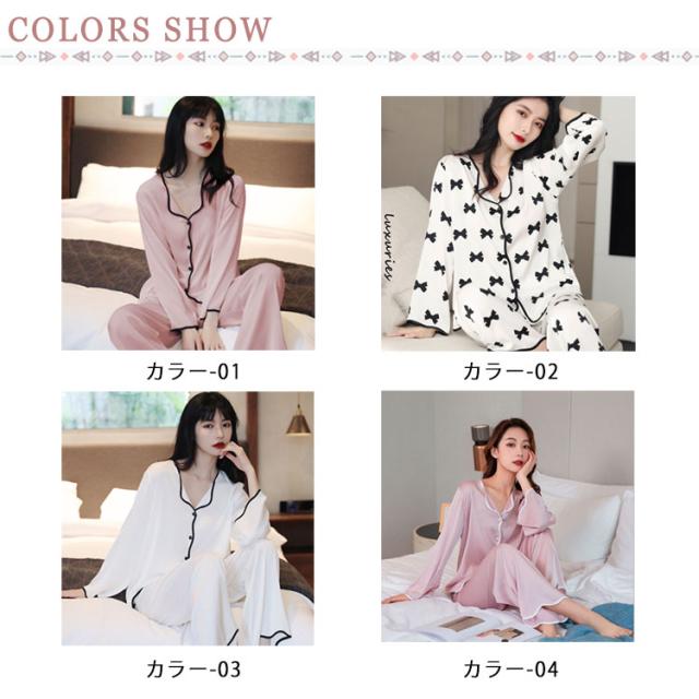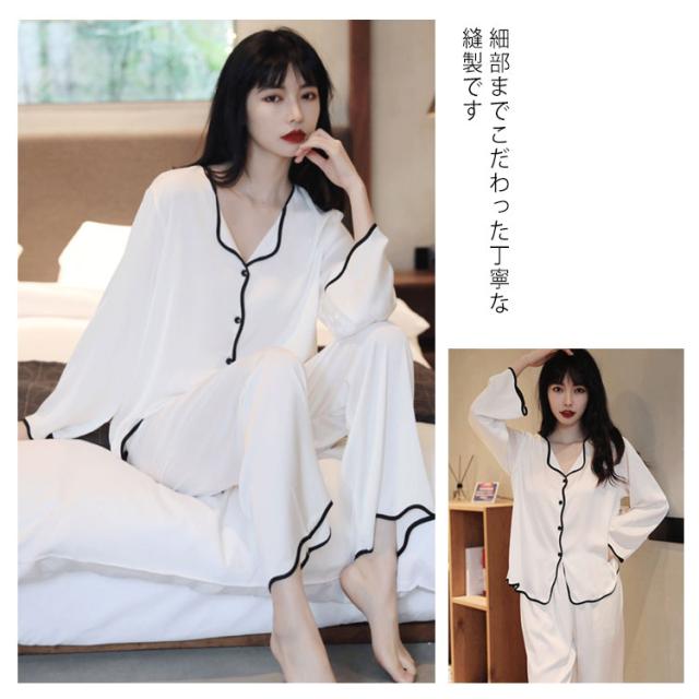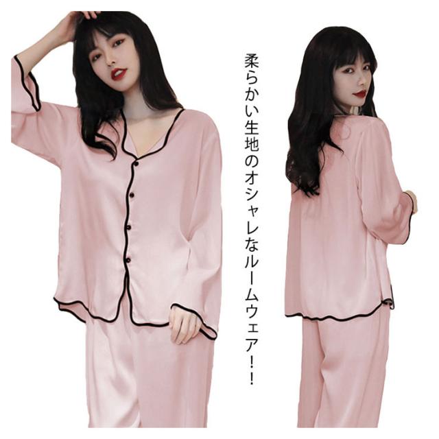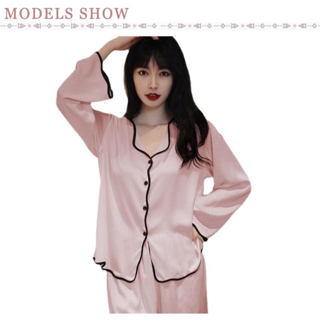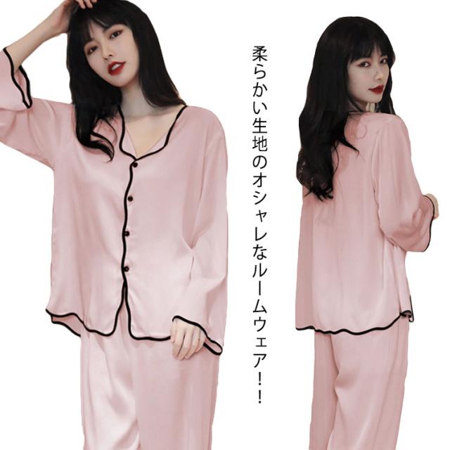 ルームウェア シルクパジャマ 上下セット ナイトウェア 長袖 長ズボン ボタン ズボン 前開き 寝巻 ゆったり 部屋着 ルームウェア 光沢 通気性 保温性 快適 ナイトウェア プレゼント ギフト 女性 上品 女らしい 秋 春 夏