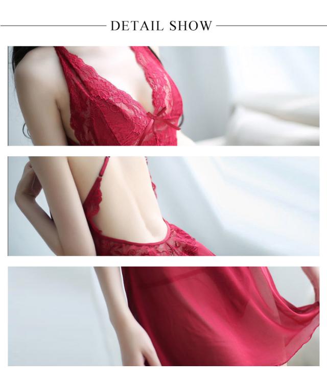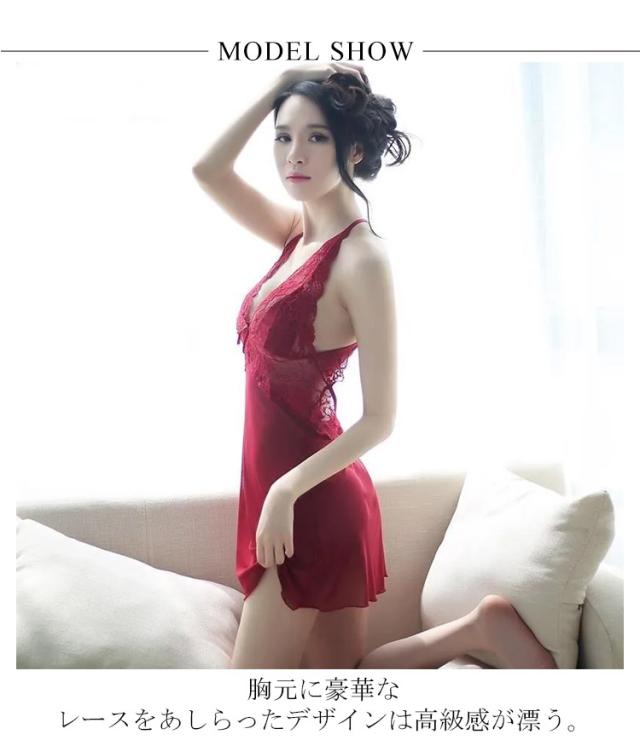 | 体のラインや素肌を綺麗に演出してくれるランジェリーです。 胸元に豪華なレースをあしらったデザインは高級感が漂う。 上品でセクシーな深いVネックは魅力です。 後姿もキュートな大きく開いた背中がポイントです! 薄手な素材を採用し、通気性がよく涼しく快適な着心地です。 透け感があり、ウエストをほっそり見せてくれる効果もあります。 Tバックショーツは付属しています。 | |
