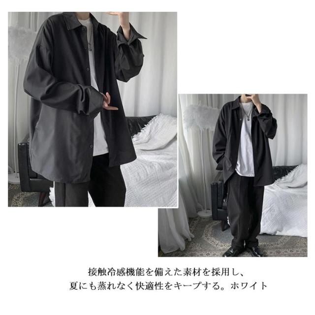 接触冷感 シャツ メンズ 長袖 クール 夏服 韓国ファッション カジュアルシャツ 落ち感 シンプル UVカット ライトアウター かっこいい 春 秋 ゆったり おしゃれ 大きいサイズ 薄手 送料無料