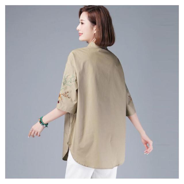 刺繍ブラウス ロングブラウス 夏 レディース オシャレブラウス シャツブラウス ゆったり 無地 ポケット付き 半袖 コットン 刺繍 シンプル カジュアル 送料無料 おしゃれ おでかけ ナチュラル