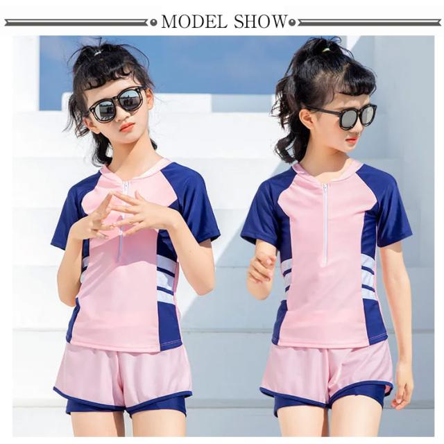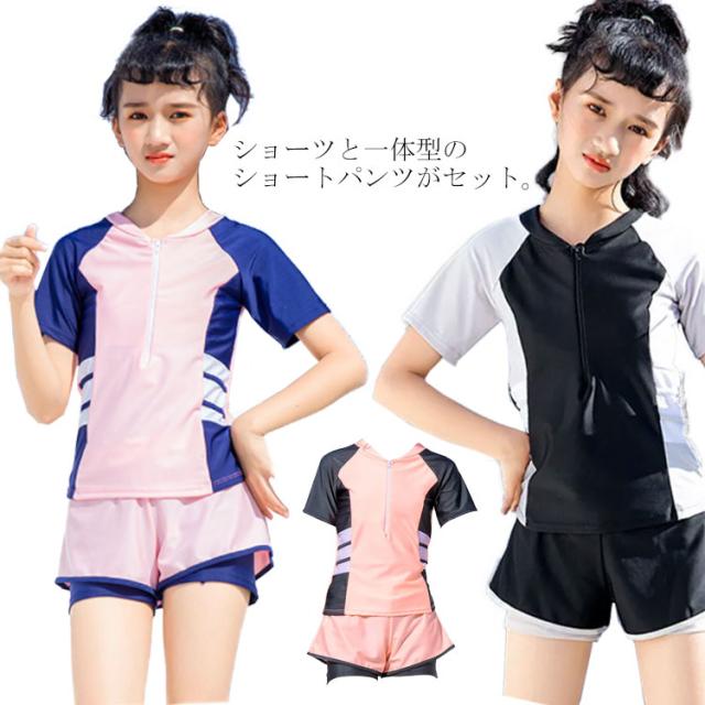 送料無料 水着 2点セット 子供 女の子 水着 セットアップ トップス パンツ ガールズ ジュニア スイムウェア 水着 子ども用 みずぎ
