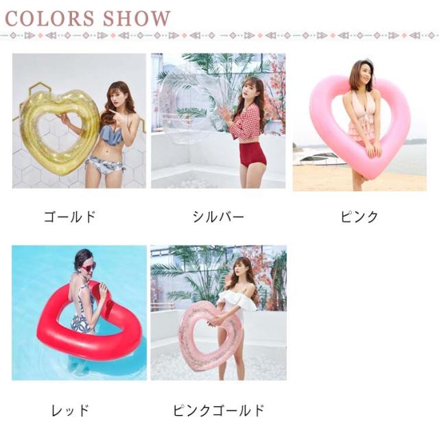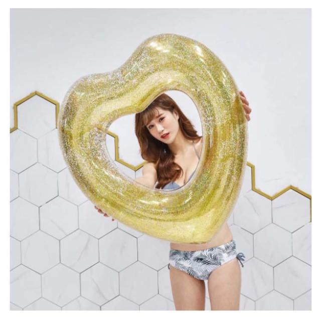 | ハート型浮き輪に加えて、キラキラきれいなかけらがたくさん入ります。無視できないほど目立つ存在です。 キラキラが入って本当に可愛かったです。リラックスしたい場合はお尻を穴に置き、足と上半身を縁にかけるとゆっくりと水上を漂えます。水泳の練習も役に立ちます。 二つのサイズがあります(ゴールド、シルバーは90CMだけ)、大人とお子様に適用するだけでなく、遊び方も様々です。水遊び、旅行、撮影には一番いい選択肢です。 | |