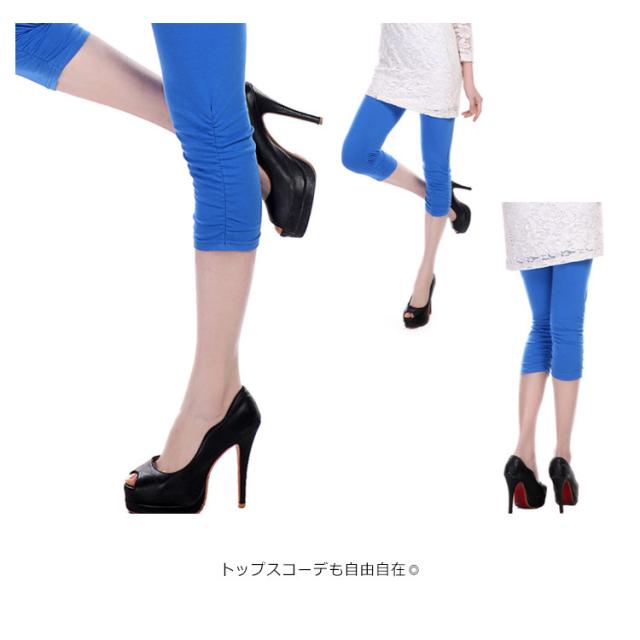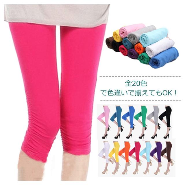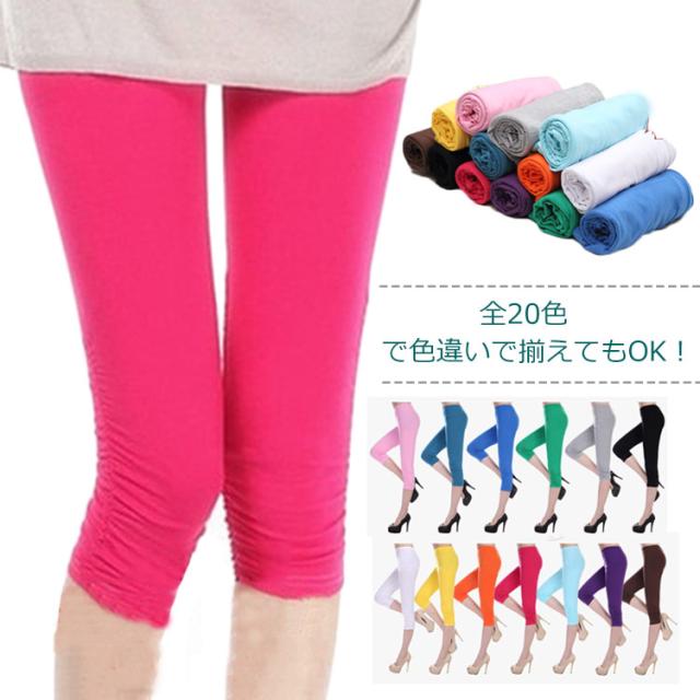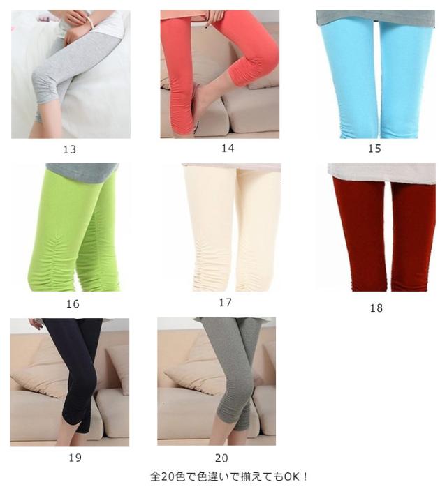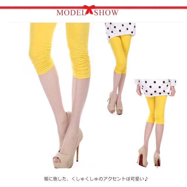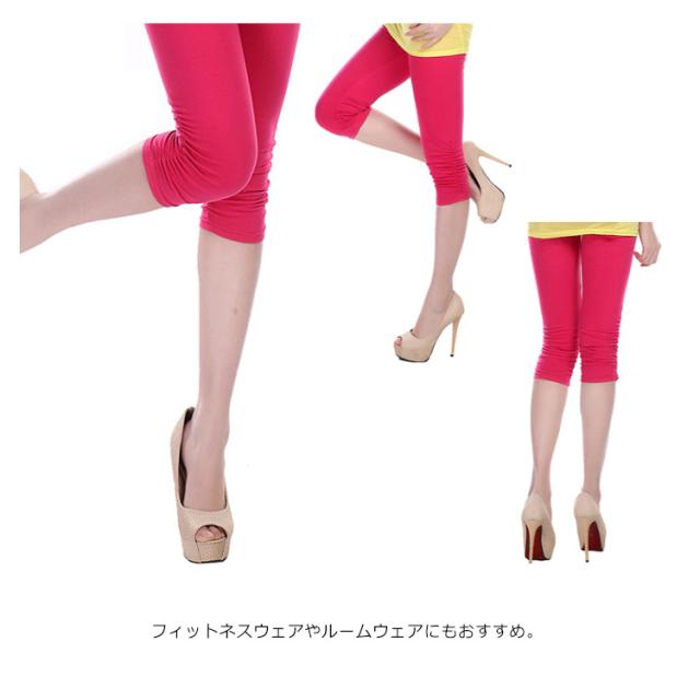 裾くしゅくしゅデザイン 7分丈カラーレギンス 七分丈レギンス カラーレギンス スパッツ ペチパンツ 七分丈 5分丈 ヨガパンツ ホットヨガ フィットネス スポーツ ルームウェア 部屋着 薄手 無地 送料無料