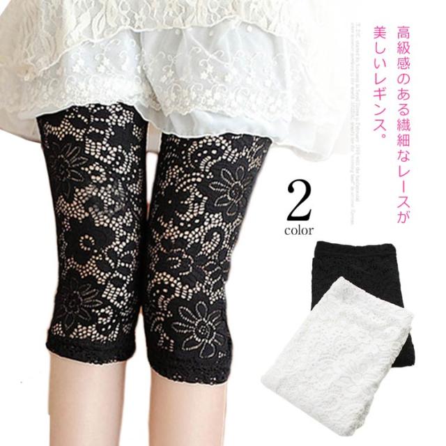 | 高級感のある繊細なレースが美しいレギンス。 控え目な光沢感が上品な雰囲気を醸し出す。 透け感のある花柄レースで、可愛くセクシーに。 通気性がありサラっとした肌触りでなので涼しく、春から夏におススメ。 ストレッチ性抜群で動きやすく、美脚効果もアップ。 チュニックや、短パンなどに、アクセントに。 腰周りは、ペチパンツ付で透けにくいので安心 | |