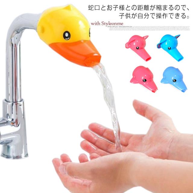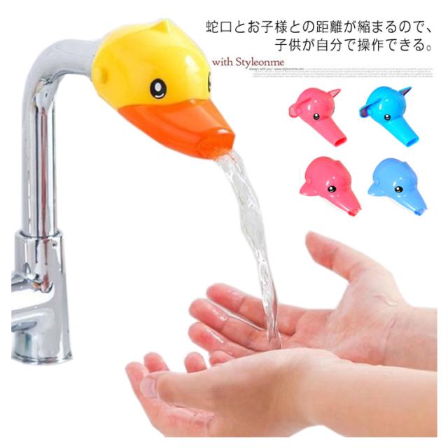 ウォーターガイド 動物タイプ 子供 キッズ ベビー 楽しい 蛇口 子ども 手洗い補助 サポート 便利グッズ 簡単 取り付け 水道口 アヒル イルカ ゾウ ピンク ブルー ポイント消化 送料無料