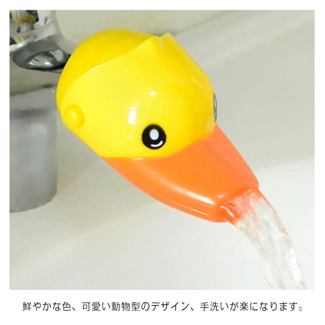 | 蛇口とお子様との距離が縮まるので、子供が自分で操作できる。 鮮やかな色、可愛い動物型のデザイン、手洗いが楽になります。 取り付け部分は縮性がある柔らかい素材です。 キッチン、トイレ、洗面所、お風呂など家じゅうの蛇口に取り付け。 手洗いの習慣を促進し、インテリア的にも可愛いです。 | |