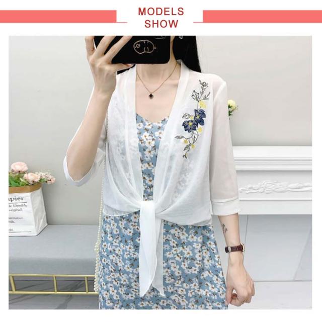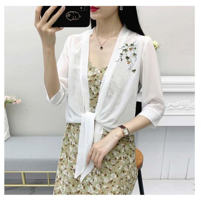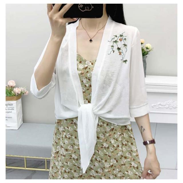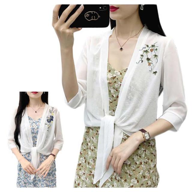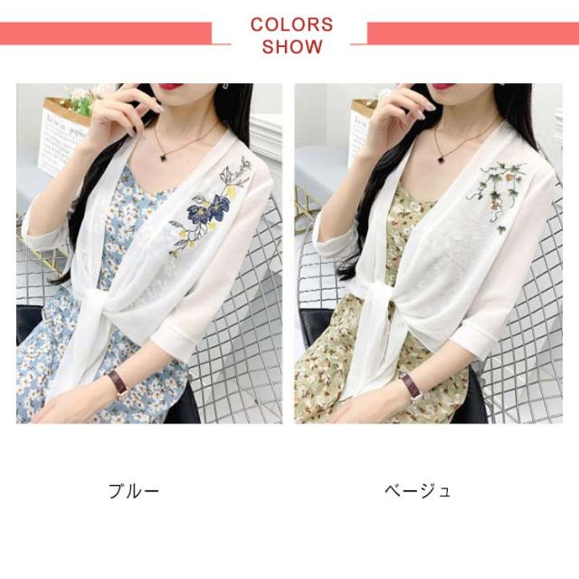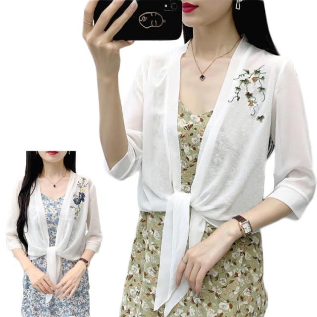 半袖?カーディガン レディース? 半袖?薄手?シフォンカーディガン カーディ?トップス?Vネック?カーディガン 夏 シンプル 刺繍 ゆったり 無地 Vネック アウター 送料無料 トップス