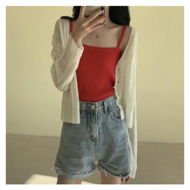 | 程良いフィット感でボディラインをすっきりみせるニットキャミトップス。 8色展開で、豊富なカラーの中からきっとお好きな色が見つかる。 シンプルで使い勝手が良く、プラスちょうどいい厚さで、季節問わず活躍してくれる。 なデザインでどんなボトムとも相性抜群のアイテムです。 一枚だけアウトにしても◎!大人セクシー美しラインを見せます。 | |