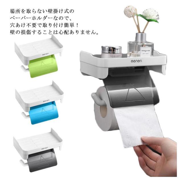 紙巻器 トイレットペーパーホルダー トイレ用品 カバー 小物置き 棚 収納 シンプル スペース トイレ 取付け簡単 穴あけない スマホ おしゃれ 北欧 コンパクト