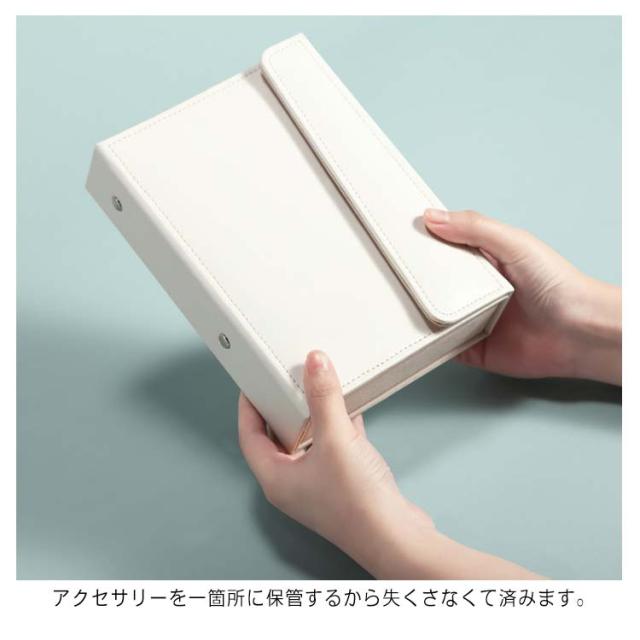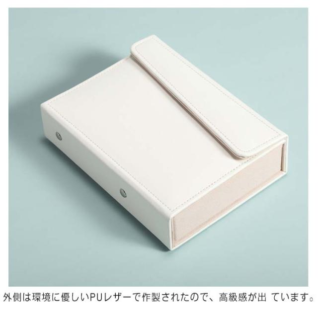 | アクセサリーを一箇所に保管するから失くさなくて済みます。 また、アクセサリーを失くす心配がないので、探す手間もかからなくなります。 種類ごとにまとめられ、コーディネートを考えやすいです。考える時間が節約できます。 整理して保管できるため何が何個あるか把握でき、多いものは買わないという判断もできるようになります。 フェルト素材で肌ざわりもよく、アクセサリーが傷つきにくいです。 外側は環境に優しいPUレザーで作製されたので、高級感が出 ています。 | |