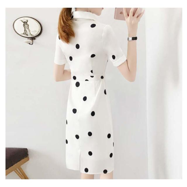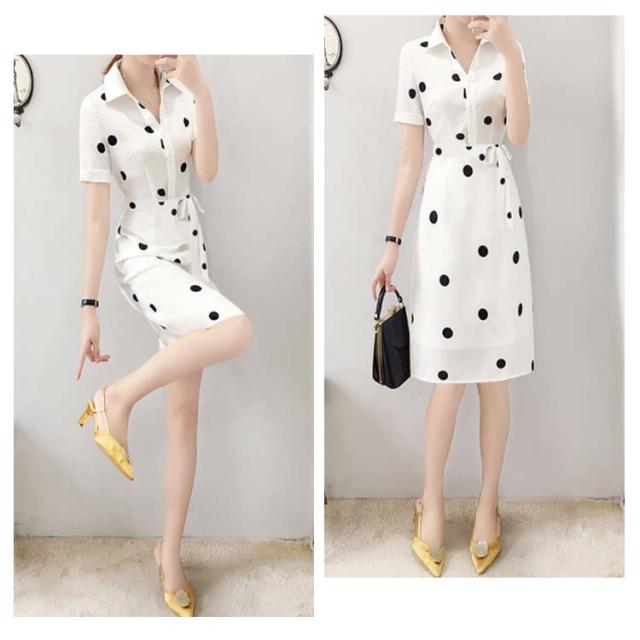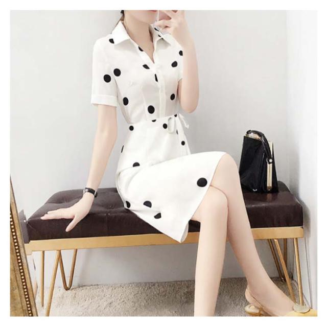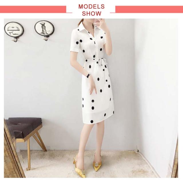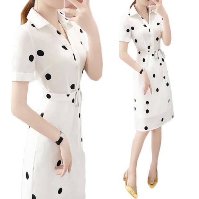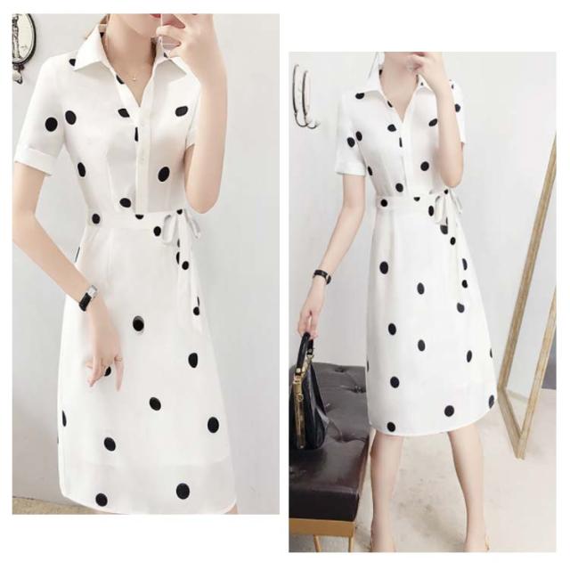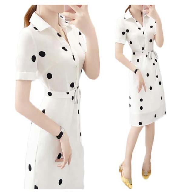 ワンピース レディース 夏 半袖 折襟 ドット柄 Aライン シャツワンピース ロングワンピース 夏ワンピース 大人ワンピース 着痩せ 送料無料 おしゃれ シンプル カジュアル