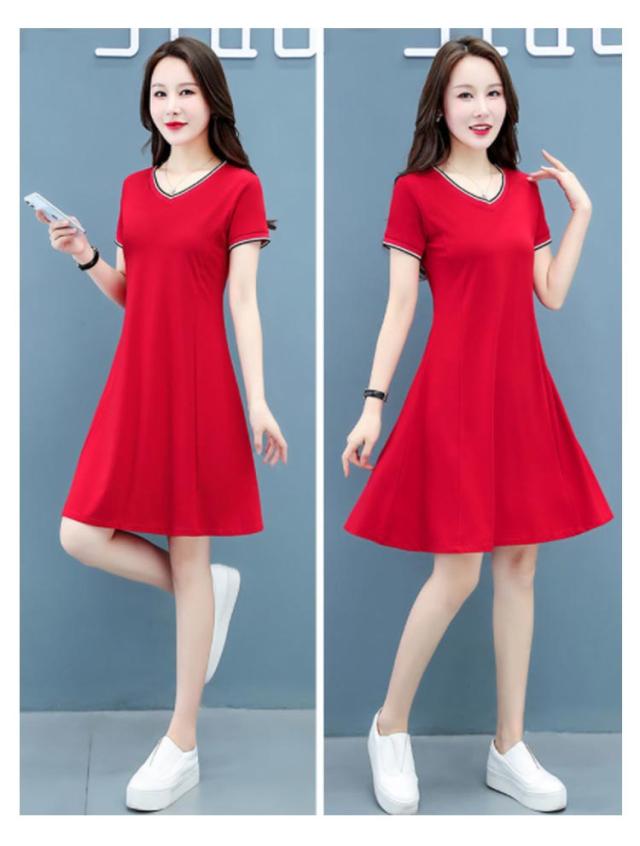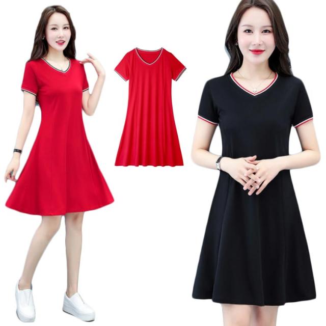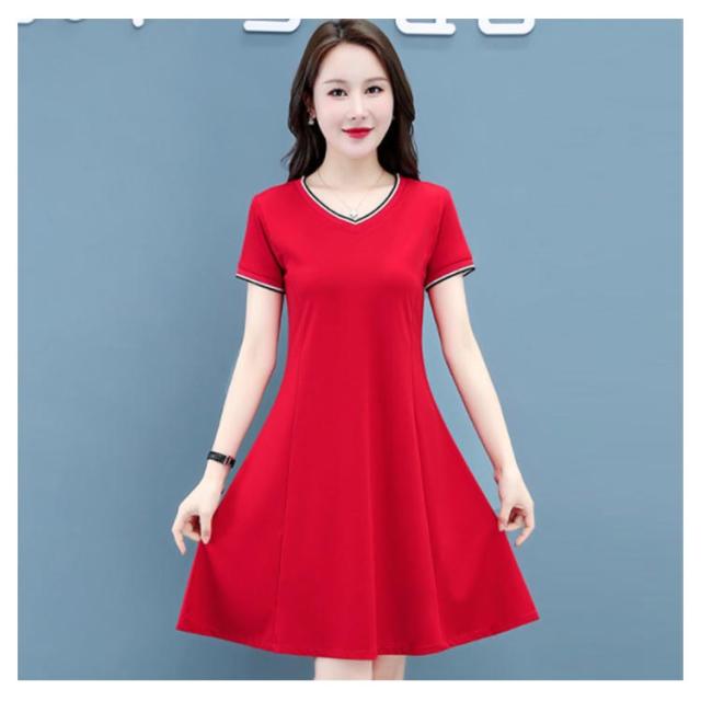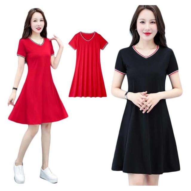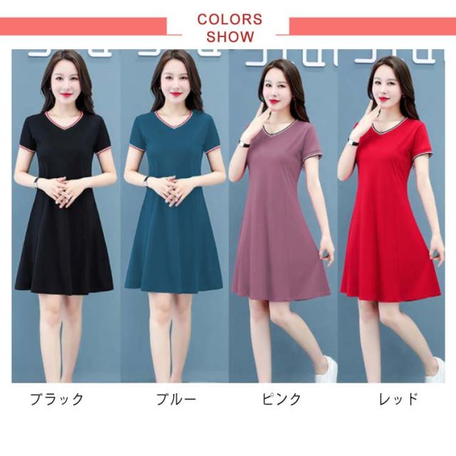 フレアワンピース レディース 夏 ロングワンピース 韓国 ゆったり Vネック 半袖ワンピース コットン 送料無料 無地 シンプル カジュアル Aライン オシャレ ダンス衣装 ロングワンピ