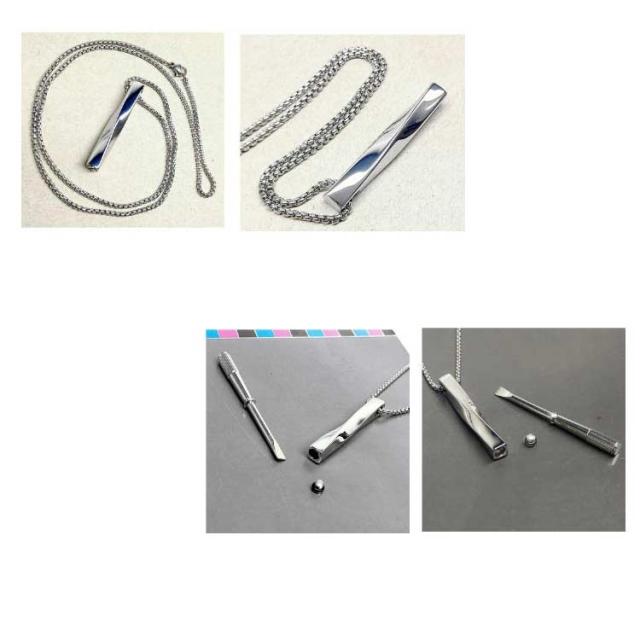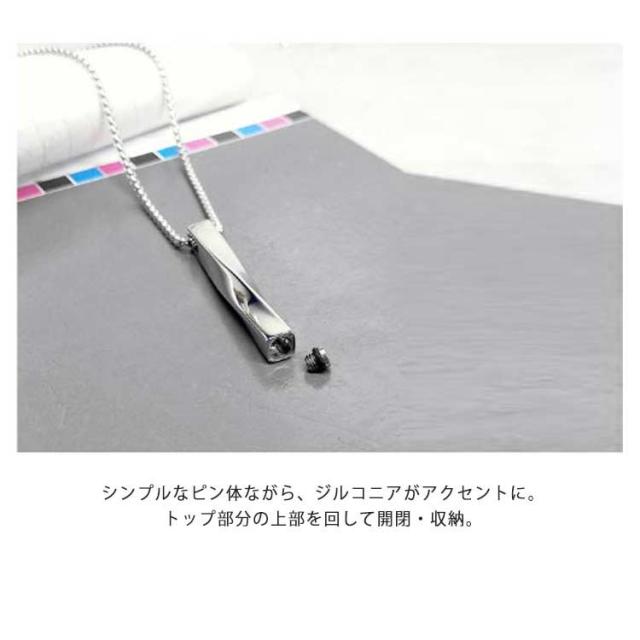 | 故人やペットの遺骨・遺毛・爪などを収めるための形状にデザインされたメモリアルペンダント。 大切な方やペットの形見をいつも胸元に、お守り代わりとして身につけることもできます。 シンプルなピン体ながら、ジルコニアがアクセントに。トップ部分の上部を回して開閉・収納。 遺骨位牌の他に香水なども入れることができます。 | |