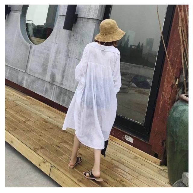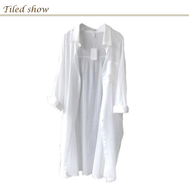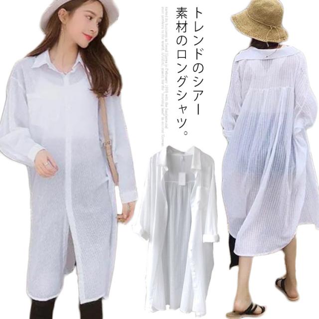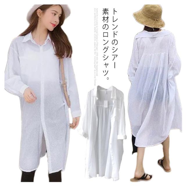 シャツ 透け感 長袖 シアーシャツ レディー ロングシャツ 送料無料 リネン 綿麻 シャツワンピ チュニックシャツ ストライプ ロング丈 シャツワンピース 羽織 体型カバー 涼しげ uvカット 紫外線対策