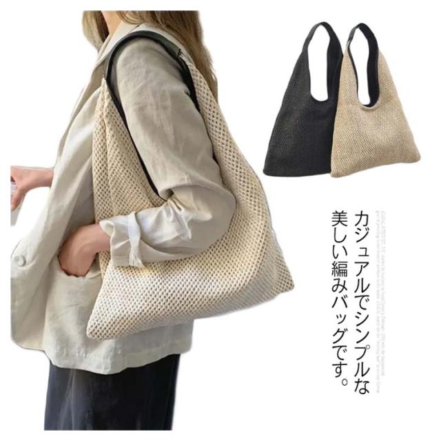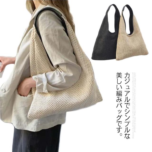 編みバッグ エコバック ショルダーバッグ レディース かごバッグ 大容量 カジュアル ファッション 肩掛け おしゃれ 旅行 リゾート きれいめ デート 女子会 20代 30代 草編みバッグ