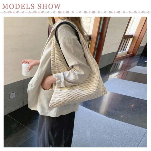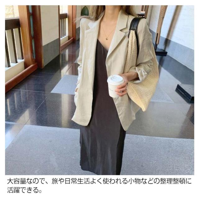 | カジュアルでシンプルな美しい編みバッグです。 大容量なので、旅や日常生活よく使われる小物などの整理整頓に活躍できる。 繰り返し使用でき、環境保護に優れ、エコバッグにもオススメ! こなれ感を演出、日常のコーディネートで大満足です。 | |