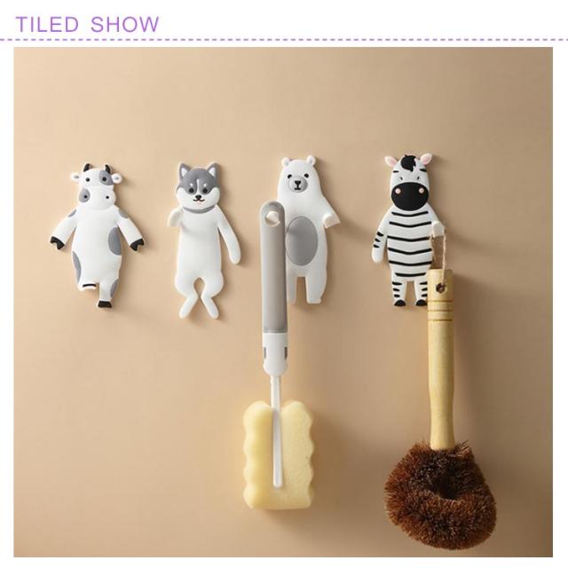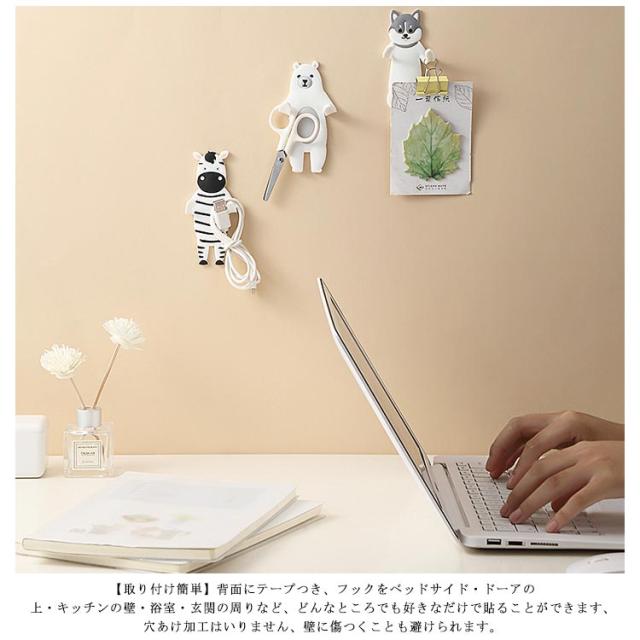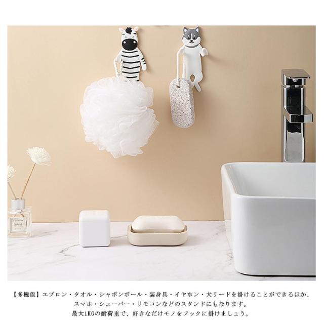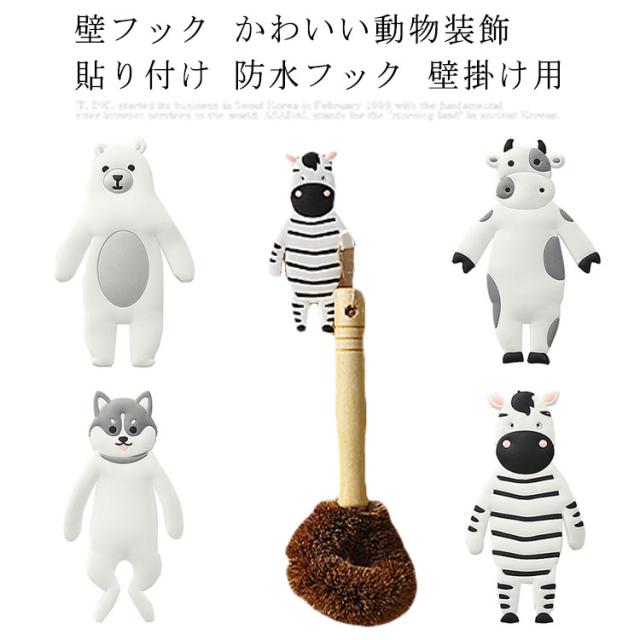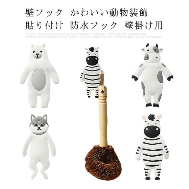壁フック かわいい動物装飾 貼り付け 防水フック 壁掛け用 キッチン/オフィス/浴室/お風呂/壁掛け/強力 フック (熊/牛/シマウマ/犬) 4個セット