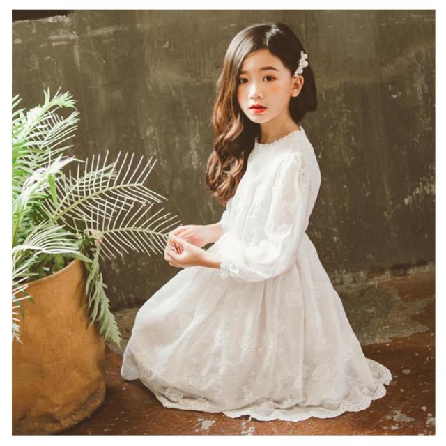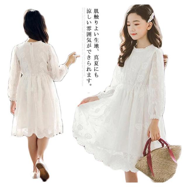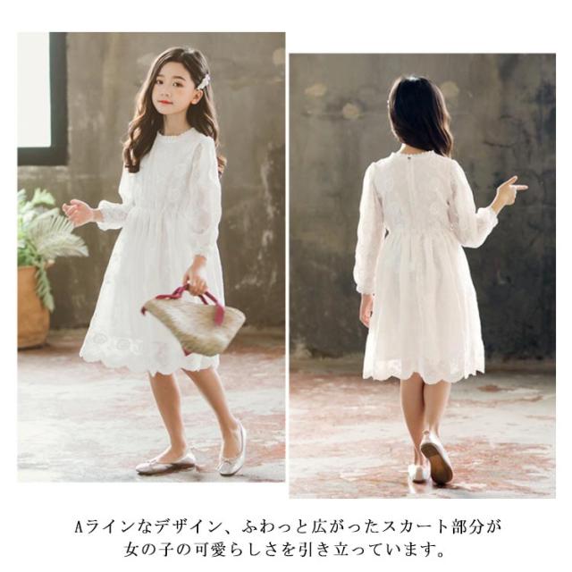 子供ワンピース ドレス 総レースワンピース 長袖 チュールワンピース フォーマル 発表会 結婚式 法事葬式 フリル襟 フリル袖 刺繍 お呼ばれ 女の子 ジュニア かわいい 新作