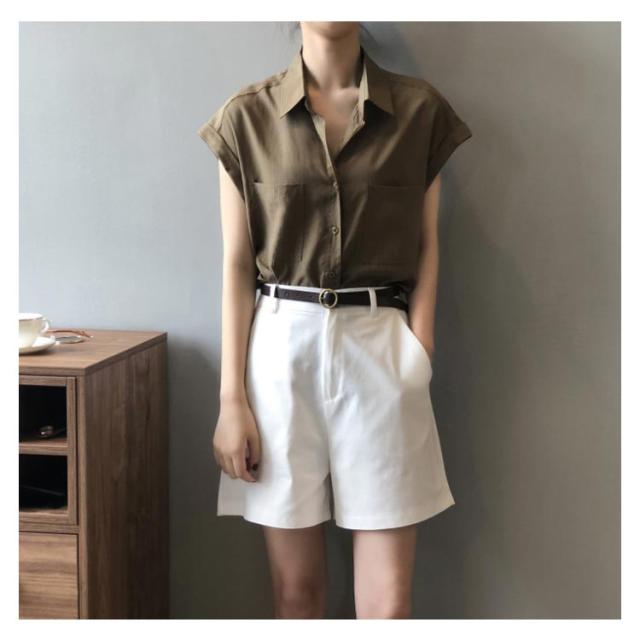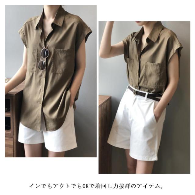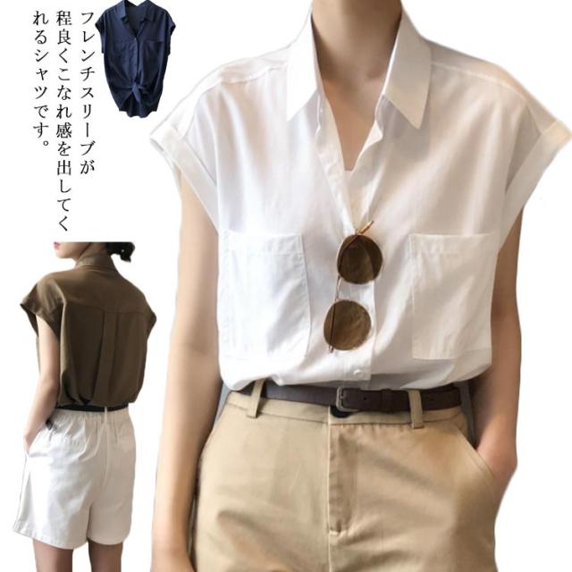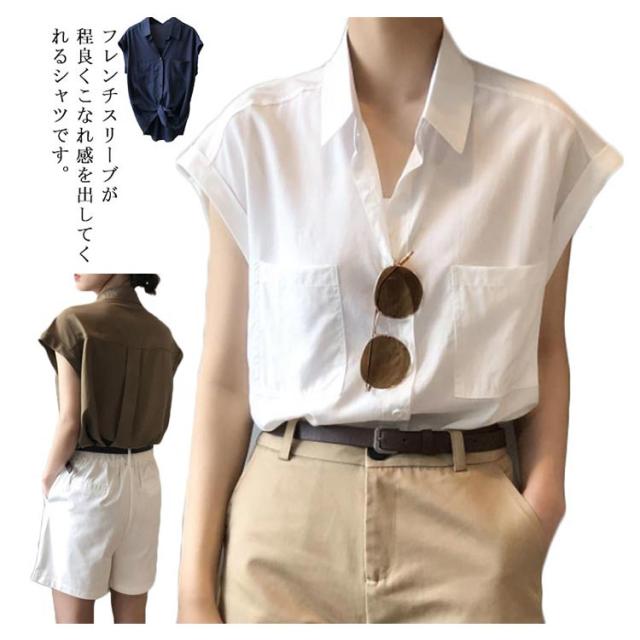 シャツ 半袖 フレンチスリーブ シャツ レディース トップス 半袖 前開き ブラウス 送料無料 オフィス 体型カバー 胸ポケット ゆったり きれいめ 軽い 薄手 大きいサイズ 無地 シンプルカジュアル おしゃれ 通気 春夏秋