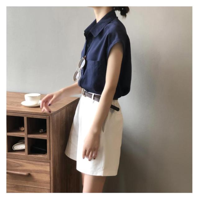 | フレンチスリーブが程良くこなれ感を出してくれるシャツです。 さらりとした肌ざわりで穿き心地抜群。 ボタンを開けてVネック風に着たりと、イメージを変えられるのも魅力です? インでもアウトでもOKで着回し力抜群のアイテム。 | |