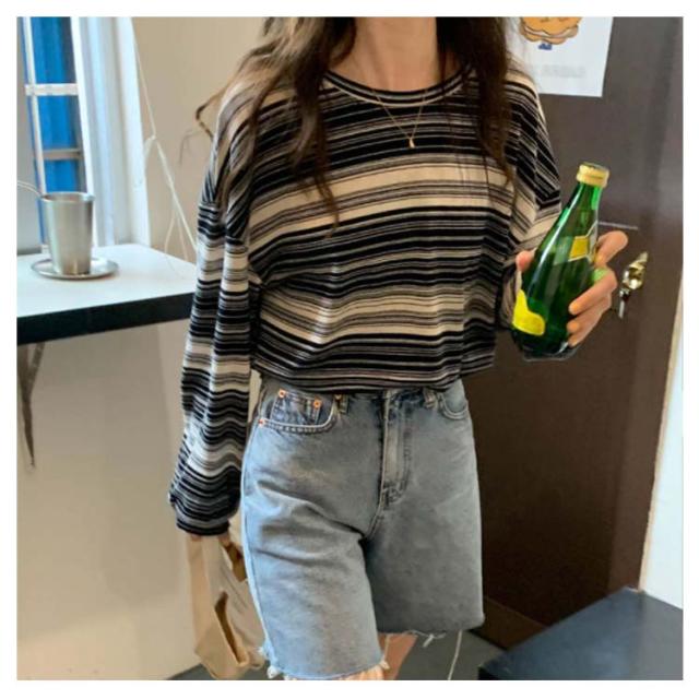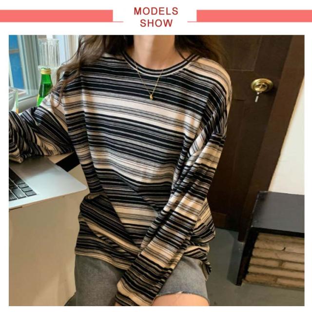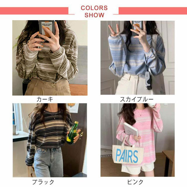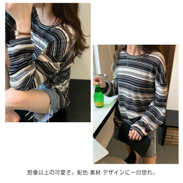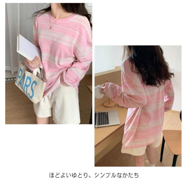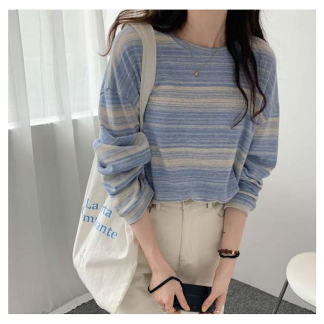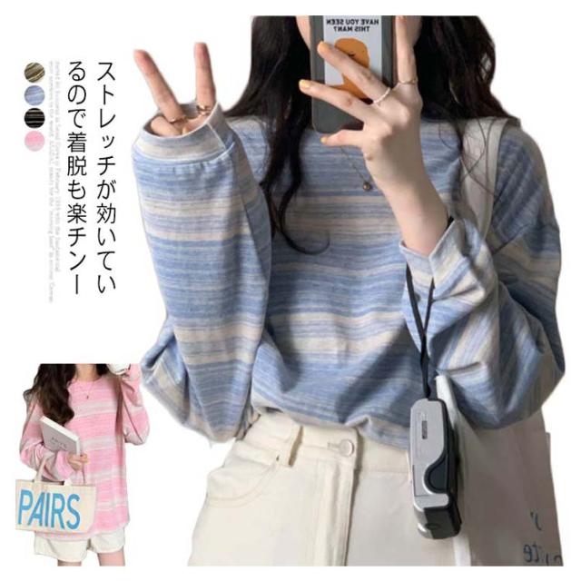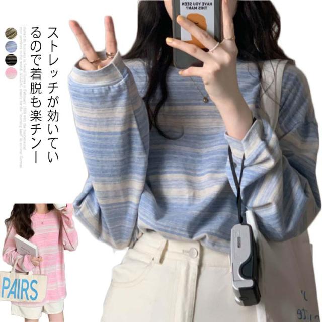 tシャツ カットソー レディース ボーダー柄 トップス 送料無料 ラウンドネック 春秋 S M L XL 2XL