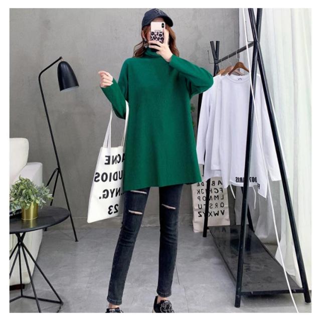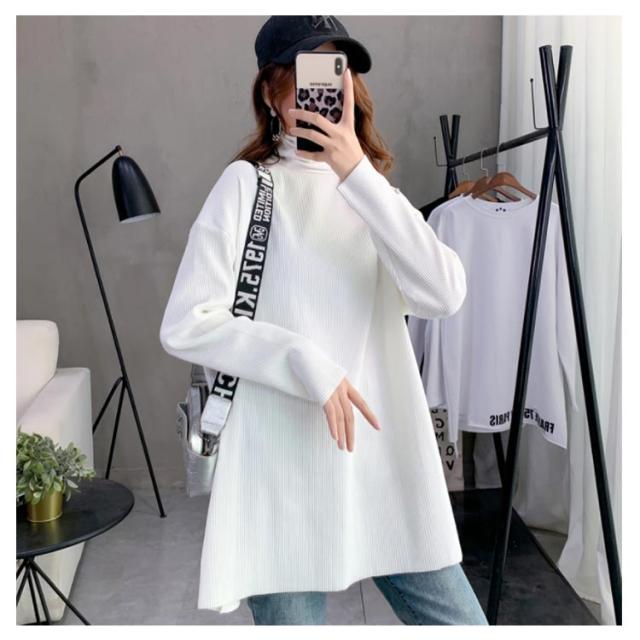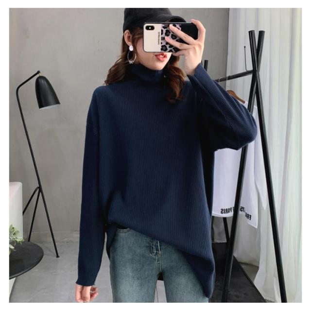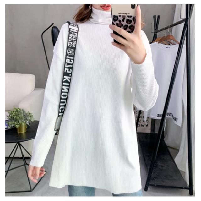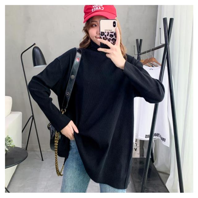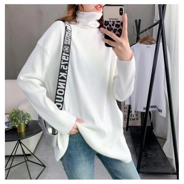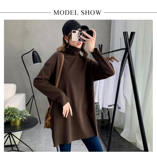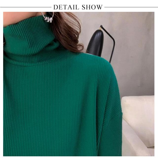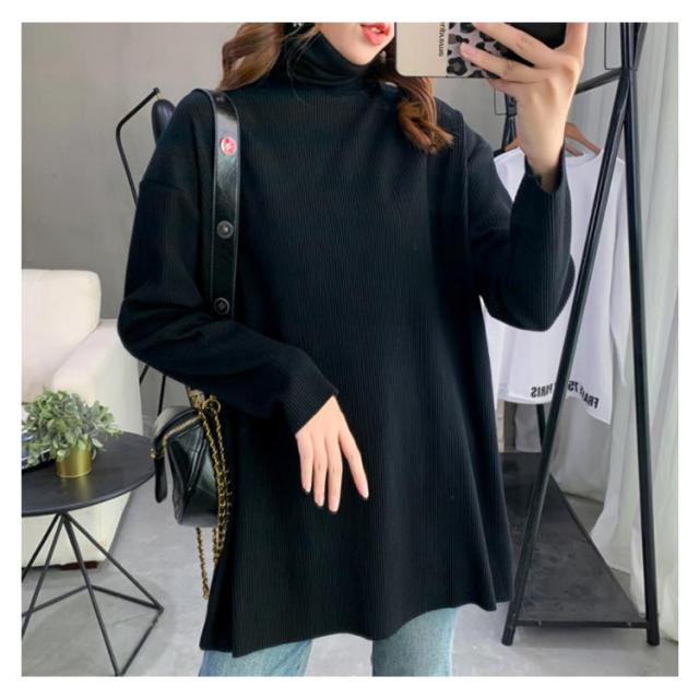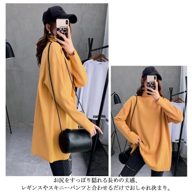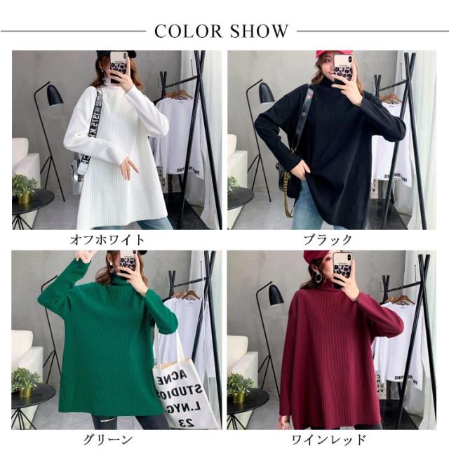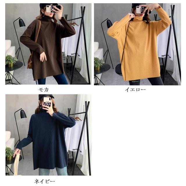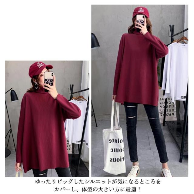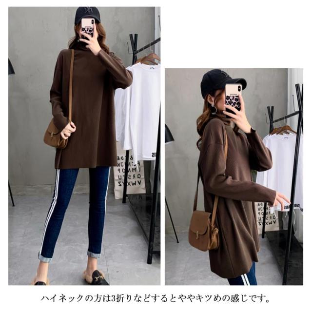 ハイネック Tシャツ ロンT 長袖Tシャツ リブニット レディース 無地 トップス ゆったり オーバーサイズ カットソー チュニック ゆる 長袖 タートルネック 大きいサイズ インナー 秋 冬 体型カバー ドルマンスリーブ ドロップショルダー
