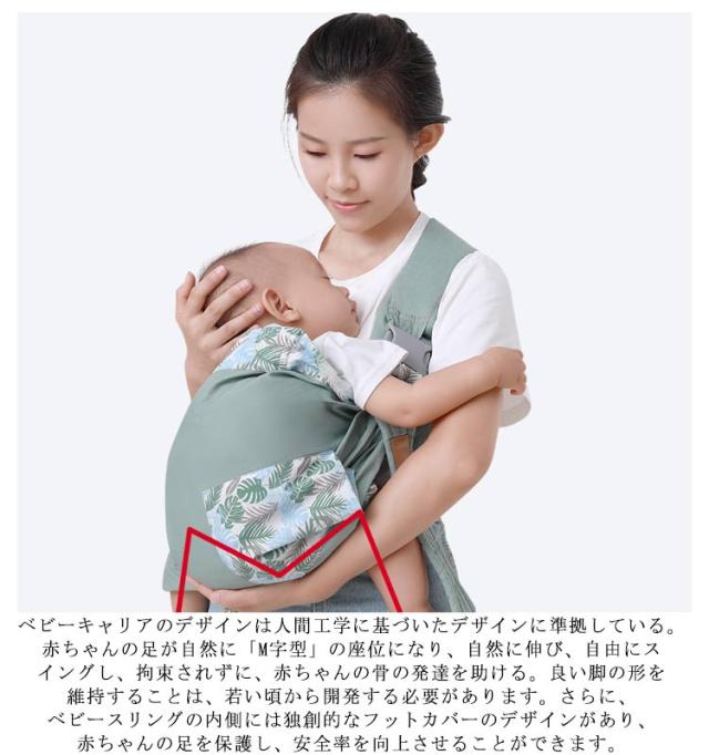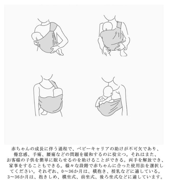 | 【子宮のシミュレーションデザイン】ベビースリングは子宮をシミュレートしたデザインを採用し、新生児がベビースリングを使用すると、まるで母親の子宮の中にいるような感覚になりる。新生児に完全な安心感を与え、高品質の睡眠品質を実現できる。赤ちゃんの発育と成長をよりよく助けることができる。同時に、親子のコミュニケーションにも便利で、親との幸せを高めます。 【6つ抱き法・対応年齢】赤ちゃんの成長に伴う過程で、ベビーキャリアの助けが不可欠であり、倦怠感、手痛、腰痛などの問題を緩和するのに役立つ。それはまた、お客様の子供を簡単に眠らせるのを助けることができる。両手を解放でき、家事をすることもできる。様々な段階で赤ちゃんに合った使用法を選択してください。それぞれ、0〜36か月は、横抱き、授乳などに適している。3〜36か月は、抱きしめ、横坐式、前坐式、後ろ坐式などに適しています。 【三角形構造・C字型デザイン】ベビーキャリアは「三角形の構造」を巧みに採用しているため、母親が使いやすく、安全性が高く、赤ちゃんの快適性が向上している。科学的な「C字型」デザインで、赤ちゃんが柔らかく肌にやさしいベビースリングで横向きに寝ると、ウエストボーンが自然に湾曲し、角度が適度になり、赤ちゃんの腰椎と頸椎を保護し、赤ちゃんの健康な発育を役立ちます。 【科学的なM字型の座位】ベビーキャリアのデザインは人間工学に基づいたデザインに準拠している。赤ちゃんの足が自然に「M字型」の座位になり、自然に伸び、自由にスイングし、拘束されずに、赤ちゃんの骨の発達を助ける。良い脚の形を維持することは、若い頃から開発する必要があります。さらに、ベビースリングの内側には独創的なフットカバーのデザインがあり、赤ちゃんの足を保護し、安全率を向上させることができます。 【授乳タオル・プライバシースペース】多機能ベビーキャリアは授乳中の赤ちゃんのプライバシースペースを提供するための看護タオルとしても使用できる。赤ちゃんが集中で母乳を飲んで、母親の時間を節約できます。非常に便利で実用的です。さらに、ベビーキャリアの側面にあるカラフルなパターンは、赤ちゃんの色覚を鍛えることができます。 | |